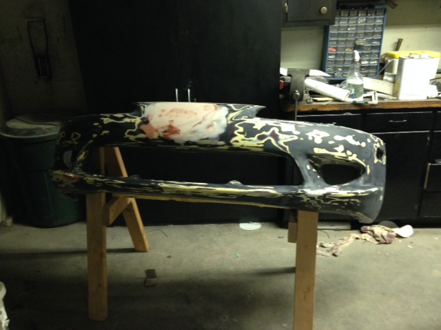 working on this front bumper, got that emblem finally shaved and is sitting with 2 coats of sealer on it.