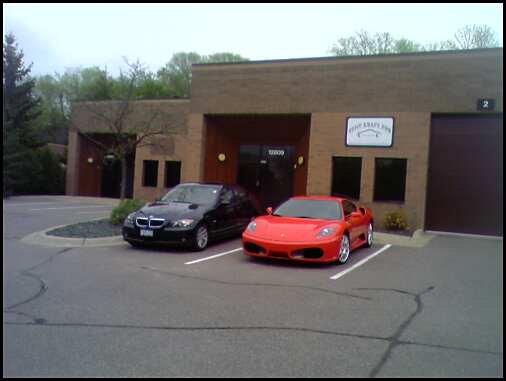 I must say the guys there where pretty damn cool. They where moving a few cars around. Lots of higher end rides that made my new car look like a pile of crap. Few new BMWs, Porsche in the shop, and this sexy fuck'n F450. When they started it up and drove it outside I wanted to run over and hump it. So fuck'n sexy. And brand new, 1000 miles on it. Sorry for the shitty pics, it was with a camera phone.