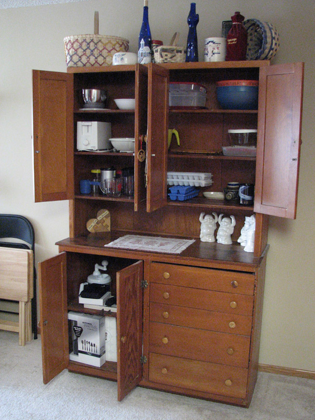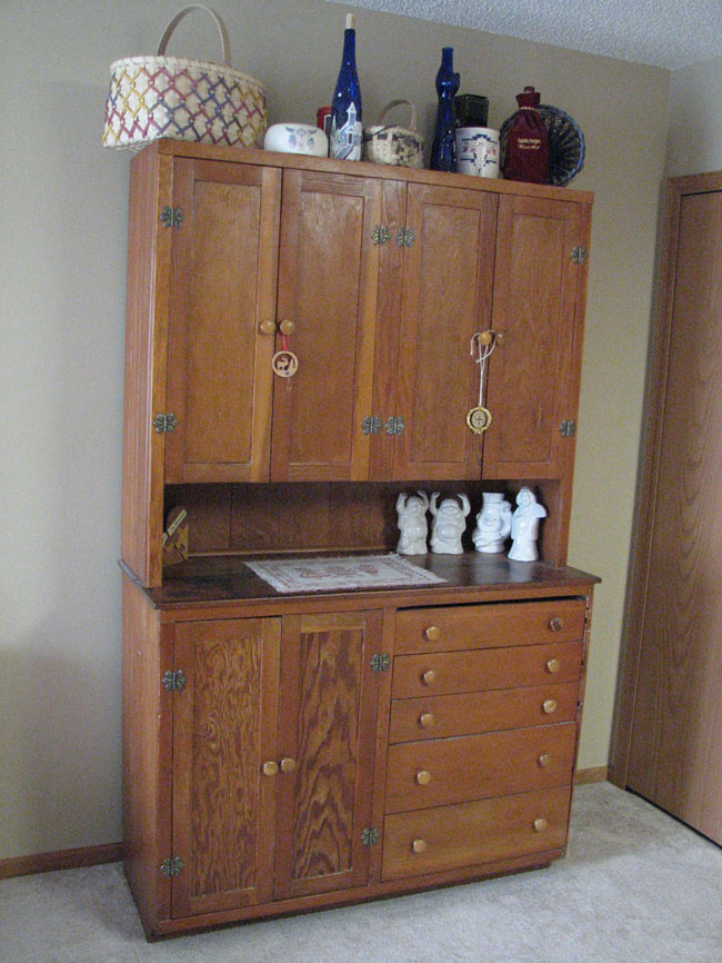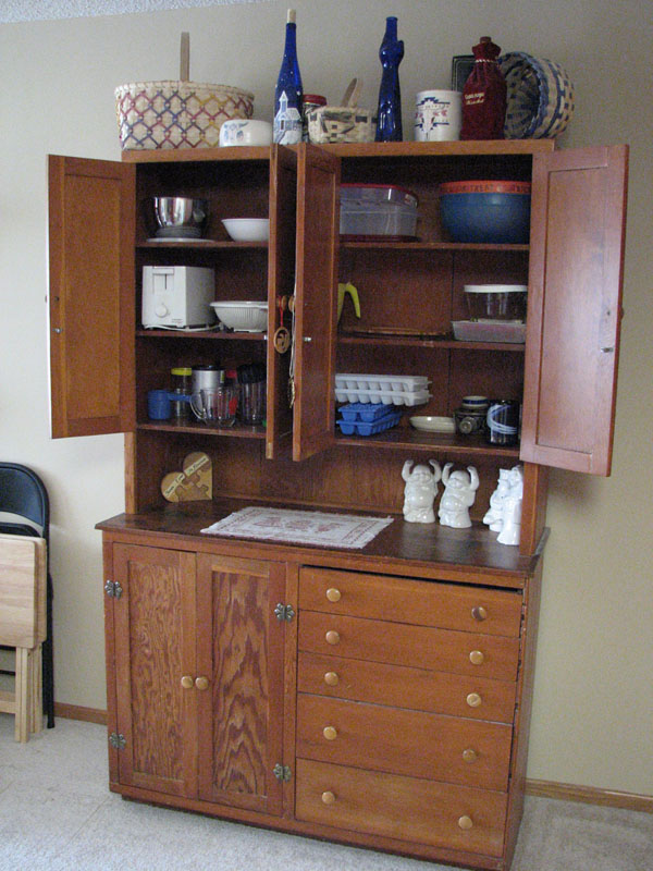 We are looking to move our antique hutch we have had for the last 8 years. It's an old antique milk cupboard from Jana's grandparents that was restored before we first got it. It's a 2 piece unit that is held together by a brace and screws on the back. Very sturdy and comes with a lot of room for all sorts of stuff to display or store. You can see the visable spaces and such between the drawers, but they all work fine and are secure in the rails. All doors close and stay closed. It's a very nice unit for the age and the only reason we feel the need to move it is that it doesn't fit with anything we are going with.