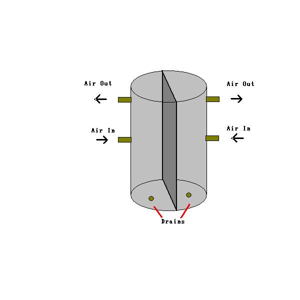 Dual chamber catch can: 3.5" diameter pipe x 6" long. Has a divider right down the middle making it actually 2 separate catch cans in one. One inlet, one outlet, one drain petcock for each chamber. It will incorporate a mounting bracket similar to what he uses on his other catch cans. These are sealed catch cans, no filters venting to atmosphere. They utilize barbed fittings. For an extra $15 he will weld on AN fittings (sizes available are -6 through -12). Unpolished or Polished, no extra charge. If you are going for a sleeper look, JKODIS Coatings (AKA me in my garage) will powder coat them Semi-Gloss Black for no extra charge as well since I'm such a nice feller and I have massive amounts of that color powder in stock. This is the same coating that can be found on MAP's 4GFD valve cover.