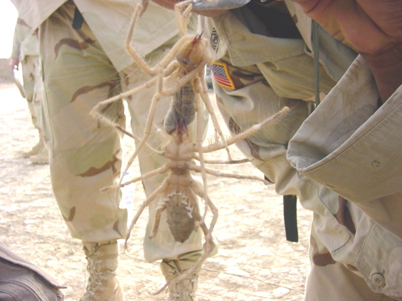 Those camel spiders get even bigger, check this out!! That is a leatherman he is hanging onto them with!!!