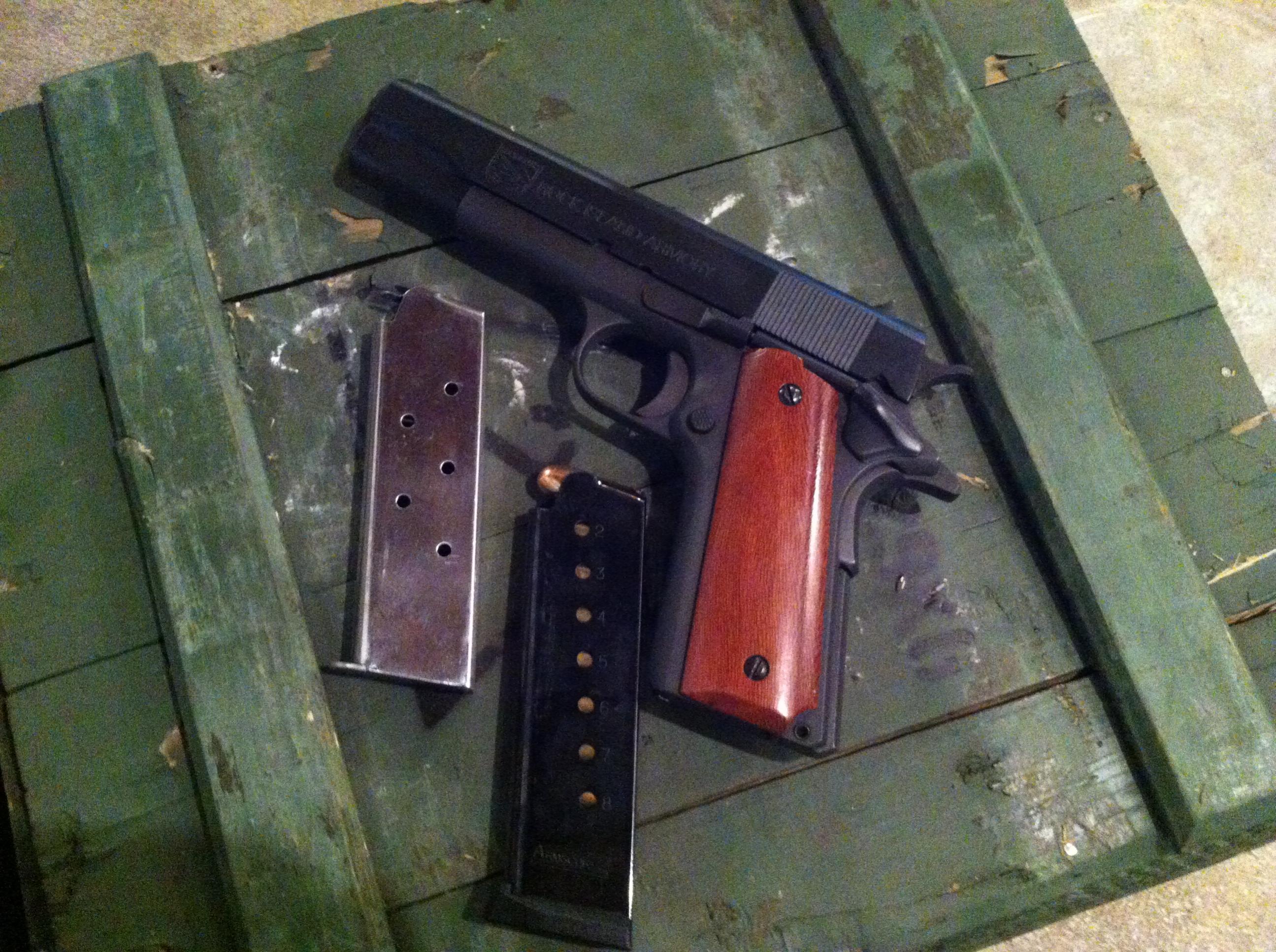 .45 caliber Rock Island 1911. Less than 800 rounds through it. Comes with two 8-round magazines.