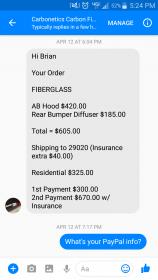 But latest message he sent was that my hood and diffuser are packaged and waiting to be shipped justo need the shipping cost sent...