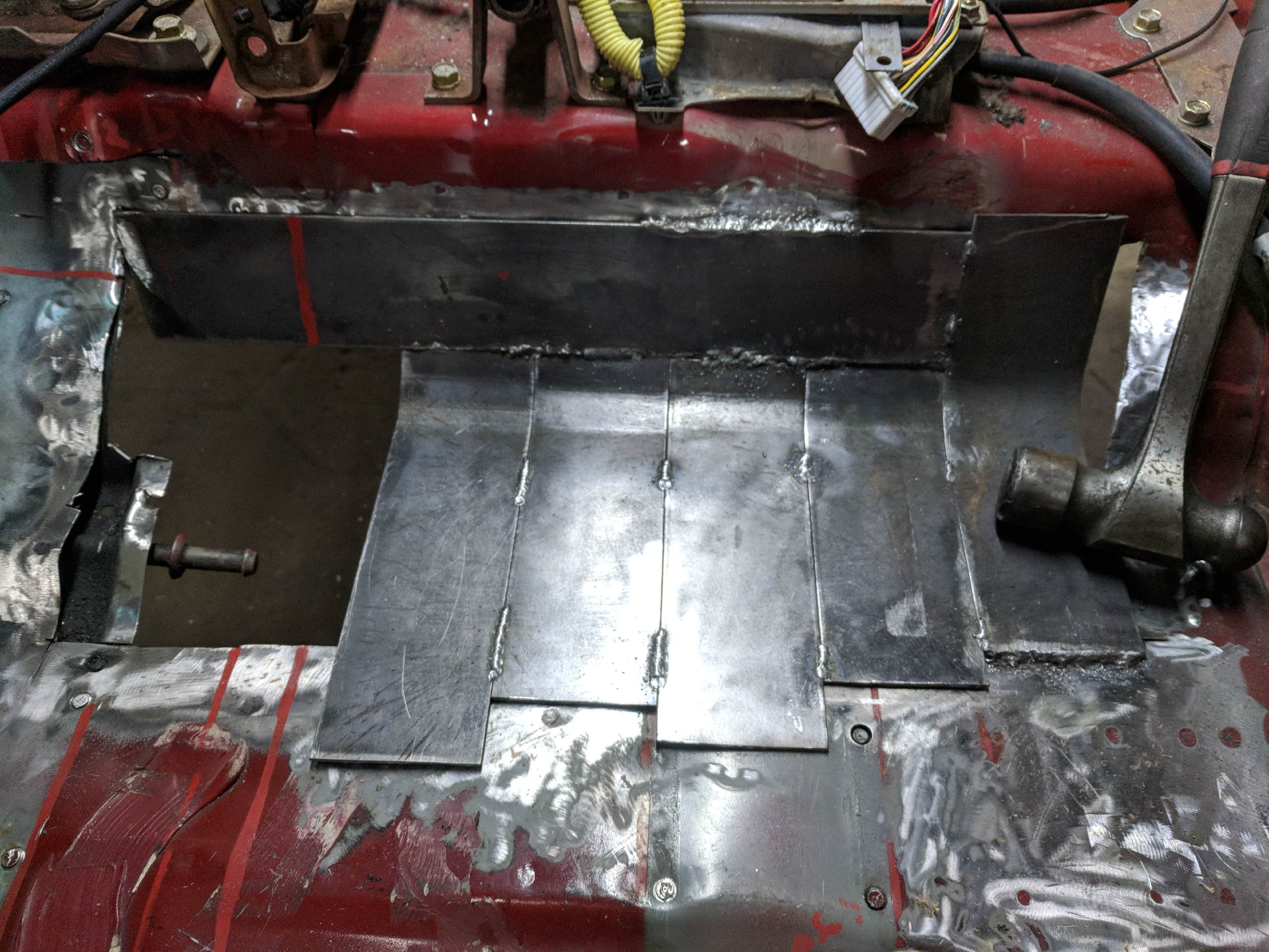 You can see here he changed his mind on the way he did the seat mount. Went from one piece of metal to several. Said he had issues with the exhaust clearance with the single sheet. And now he's telling me he has to brace the seat mount becuase it flexs when you sit in the seat