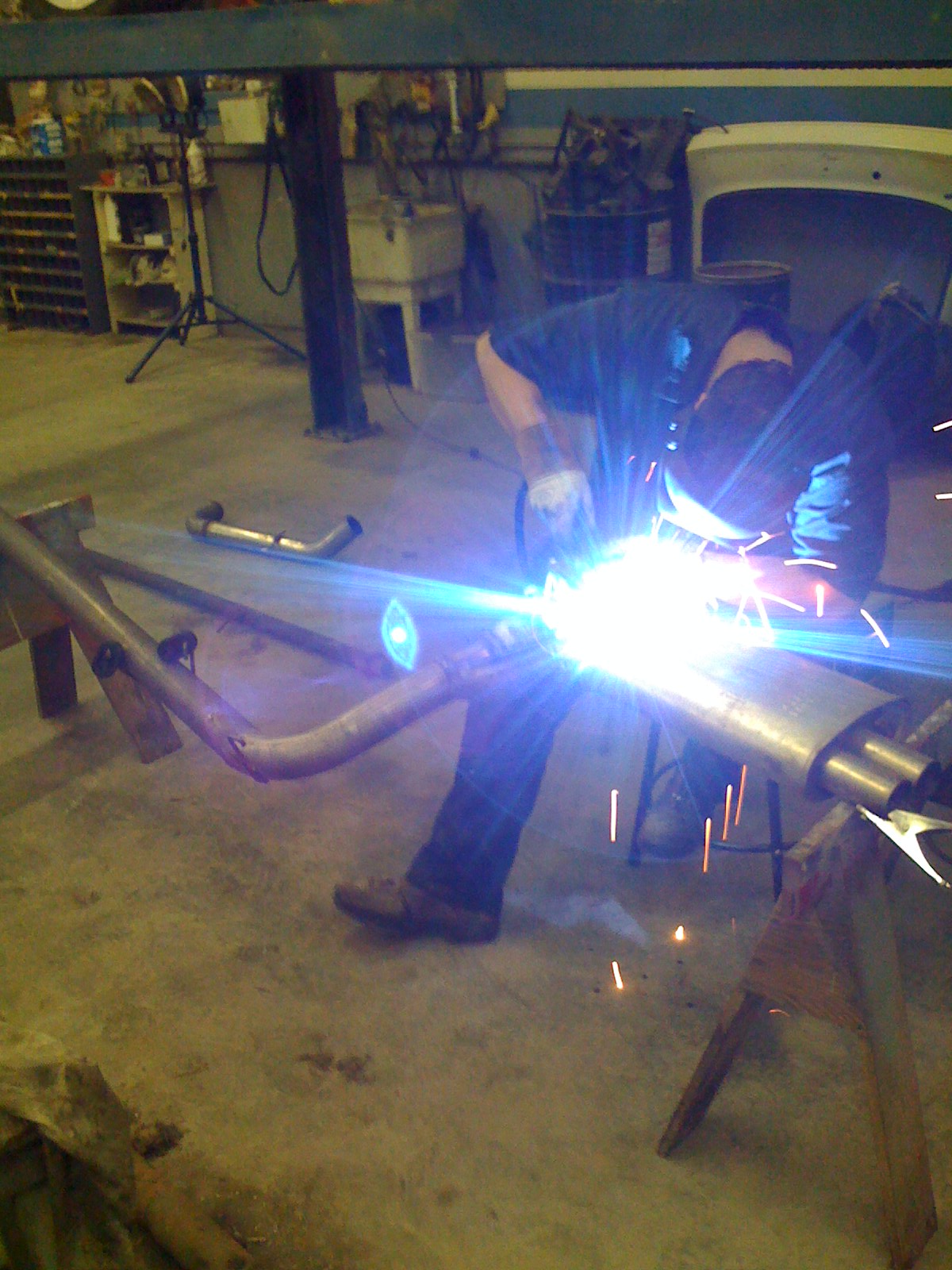 When we finished welding it up, I wanted to hear what the car sounded like with the quiet muffler. So i got in the car and turned it on...but I didnt have to hold down on the gas, it idled! WTF!