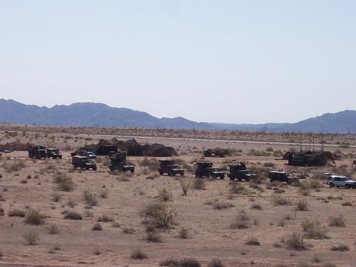 here is a pic of the whole LAAD detachment. and also u can kinda see a bigger pic of our site, its all cammie netted though. You can see our tan tents to the very left, that's where we slept