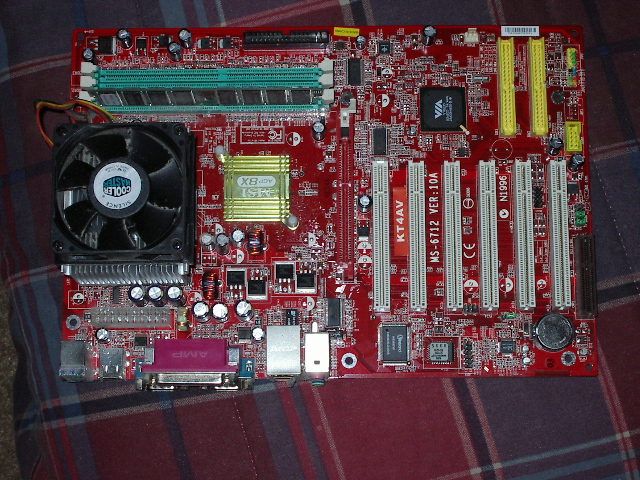 AMD Athlon 2400+ processor chip with heatsink and fan with MSI motherboard (motherboard may be bad, you get this for free to test or replace as you wish)