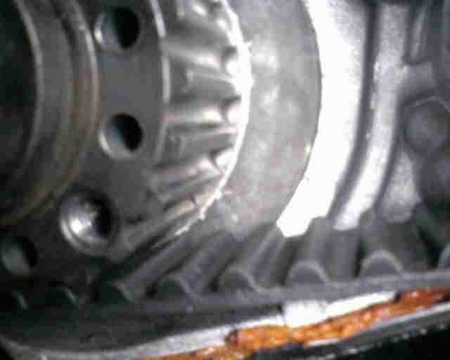 As you can see from the cell phone picture (sorry for the blurryness) the timing/balance belt separator is indeed installed properly, please note the black crap that has built up over the years is only worn out where the timing belt has kept it polished clean.