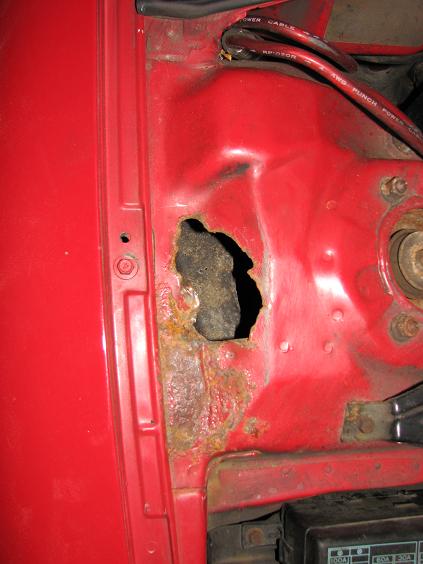 -Passenger side strut mount rust hole. Yes, the notorious hole. Got a quote from Don's Body and Auto on HWY 61, said they could do it for around $250 to repair. Damage isn't structural.