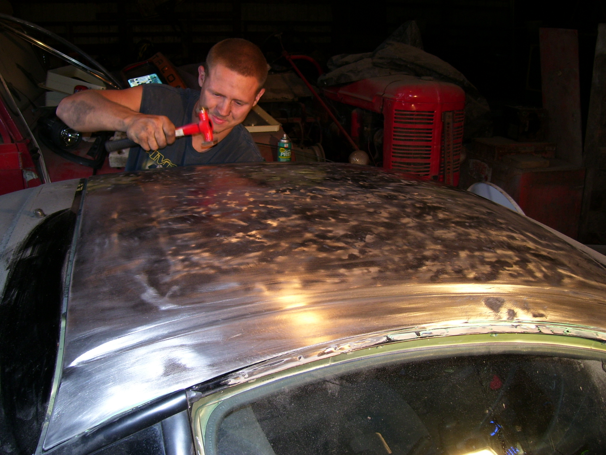 OK I started off to a good start. Well then I let my girlfriend drive the car. We all know what that leads to. I got this phone call. It was her. She had told me the hood came up. Not knowing what to expect. I went to pick up my car from her friends house. She didnt want to be around when I saw the car. So I arrived at my car. It was midnight. The car didnt look to bad smashed windshild and the roof looked alittle dented. Not to bad I thought. Well I got closer and I could not even sit it the car normaly. The roof was indented that bad with several creases in it. So I hauled the car home. I fixed the roof and decided to primer the whole car. ! As of today I have a 800 dallor hood siting in the trash, replaced the windshild, straitend the roof, filled all the dings with body filler and primed the car. I did all this over this last winter along with install and setup my turbo, msd coil (old coil was shorted), 450cc injector (out of buddy's 4g63t) and a bunch of odd's and end's. I have a couple of pictures of befor (after i punched the roof up) and after the accident. Along with couple of the intercooler and turbo. thanks for looking and tell me what you think.