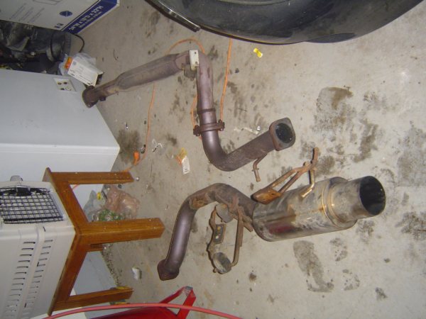 I've got a 3" apexi exhaust for a 2g gst. I'm not sure which one it is but it's got a big resonator and a nice small muffler. There is a little surface rust on the rear section as you can see in the photos. It was wasn't too terribly loud but the car it was on had a stock downpipe and cat on it.