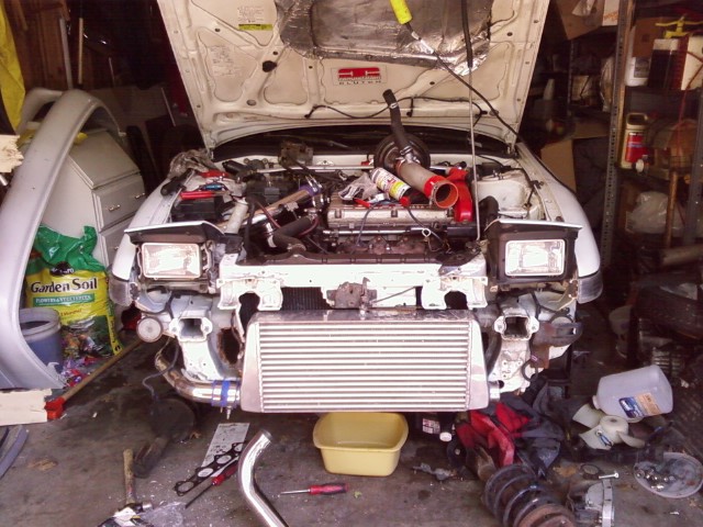 well I guess I've been working on this thing long enough to share a little bit with all of you. when I bought it it was bone stock. I've done lot's of maitenence like everyone else. but as for mods lets see I'm running a bullseye power t04b vtrim turbo, ported o2 housing, 3in turbo back exhaust, fmic with 2.5in piping, gm 3in mass airflow sensor, maf-t, 2g throttle body elbow, walbro 255lph fuel pump, aeromotive fpr, 650cc injectors, safc2, stage4 clutch (it was cheaper than the stage 2), fidanza aluminum flywheel, and ksport coilover kit. I think that is most of it for the mods