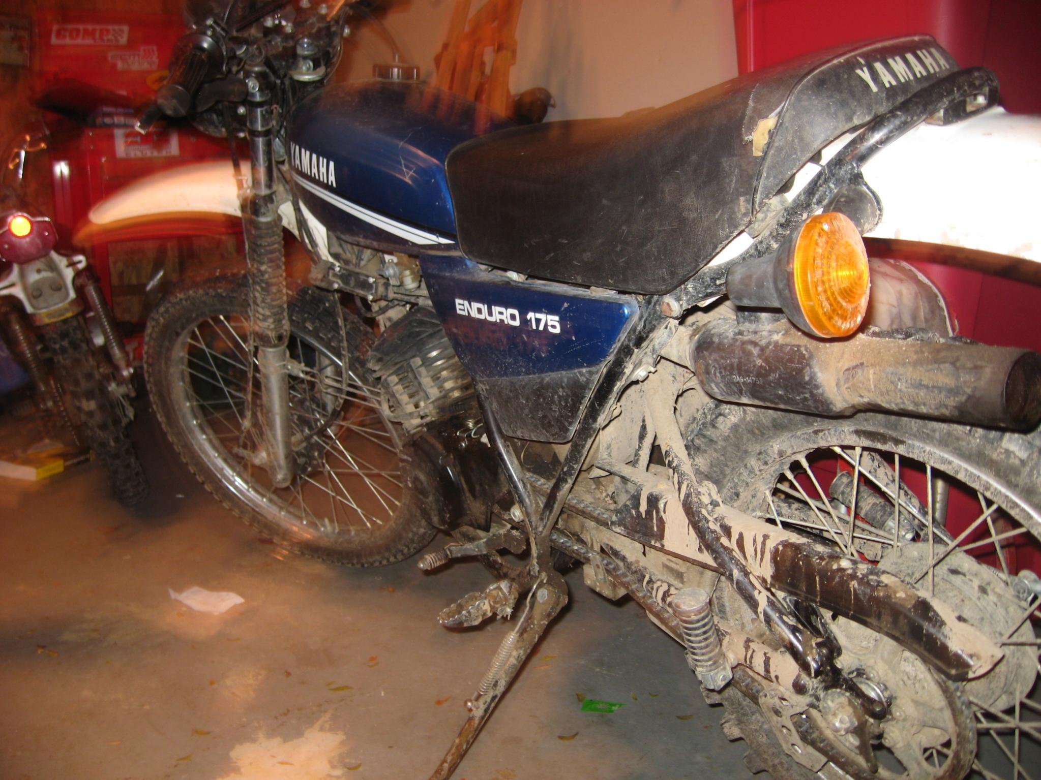 The first and main project bike is an Early 80s (I believe it to be a 1981) Yamaha Enduro 175. Its still in working condition but has lost some of its performance over the years, as well as burning oil and a number of other issues. I will be replacing the piston rings (possibly piston), the muffler, cleaning it up, replacing the Carb, as well as possibly a new coat of paint (done professionally), and anything else i can find.