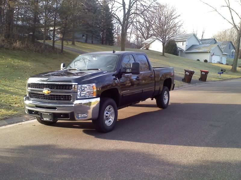 well seeing how GM had 0% APR on new 2009 cars and trucks. I have always wanted a duramax so I went and got a newone and well the payments actually ended up being like 40 bucks more a month then getting a loan on a 20,000 dollar truck. But anyway I got a brand new 2009 black crew cab 2500HD chevy lmm duramax. Its got the tow package/camper package, so it has trailer brakes in it from the factory with the nice towing mirrors, cloth interior, with the bench seat, 17inch rims with 265s instead of 245s, and well I LOVE the truck!!! I will try and get somemore pics up of the truck soon.