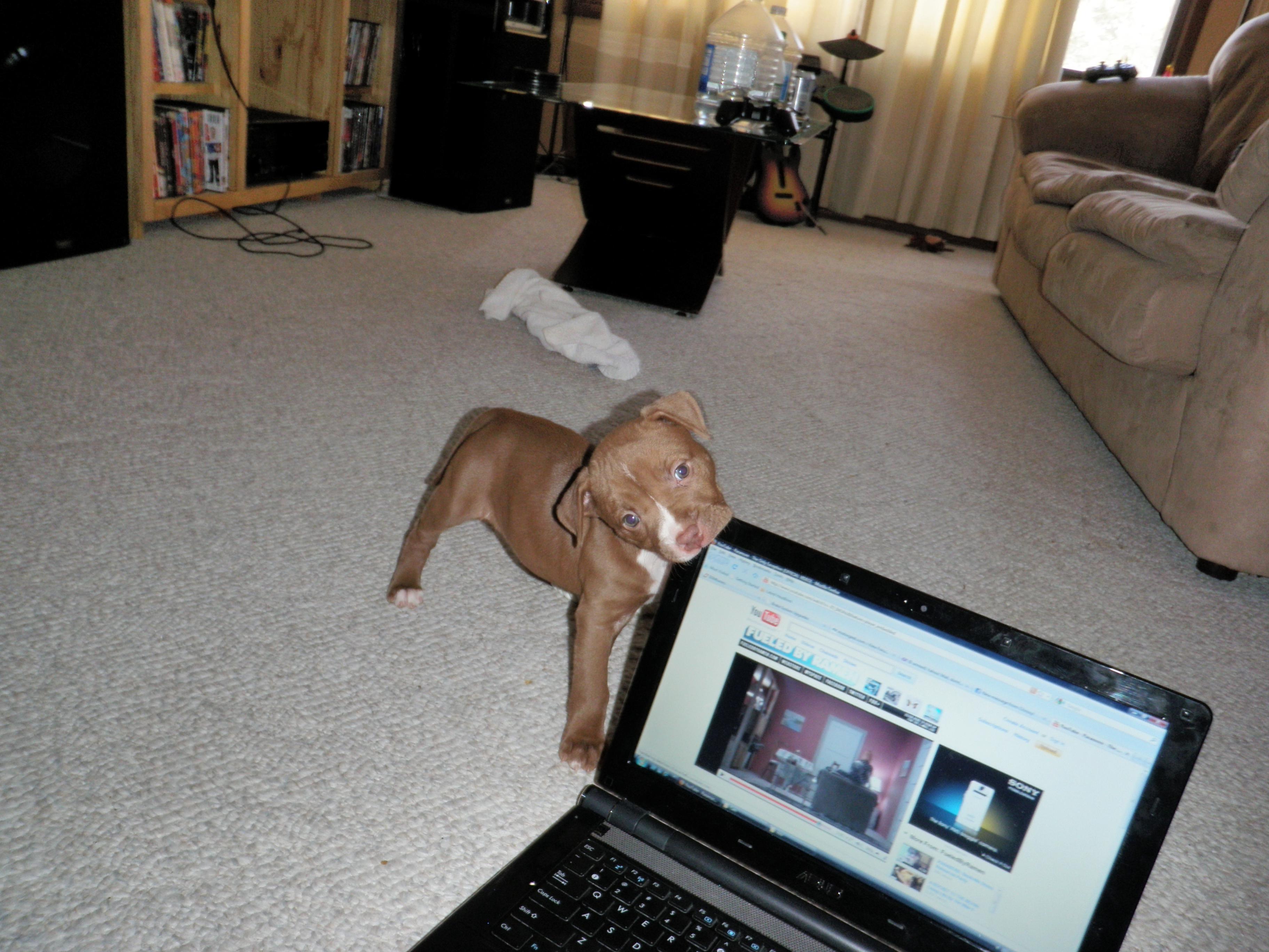 Yeah they are great dogs just need to have a firm hand with them thats why i got them so young. Yeah she loves to nom nom nom on the laptop hhahaha