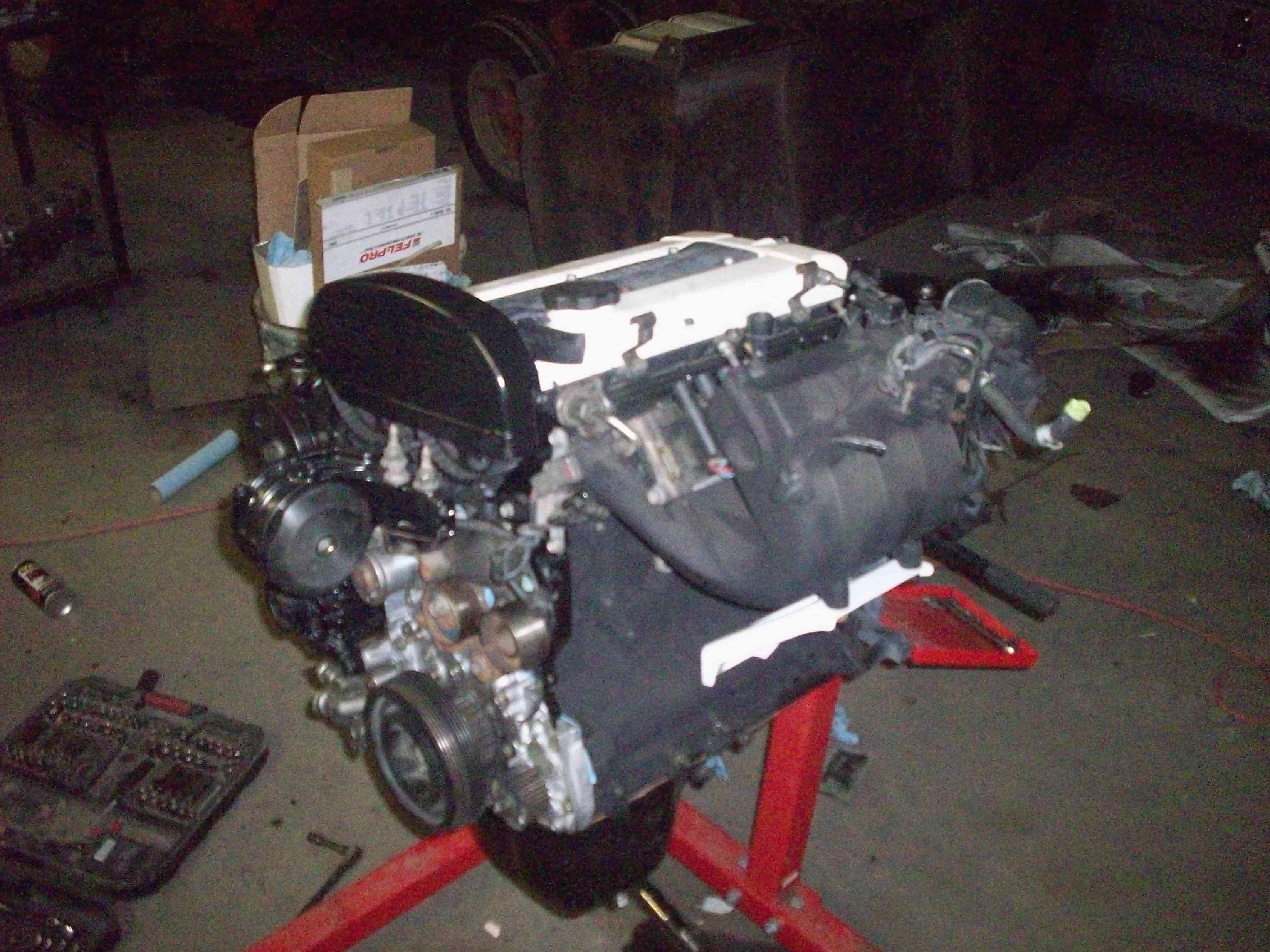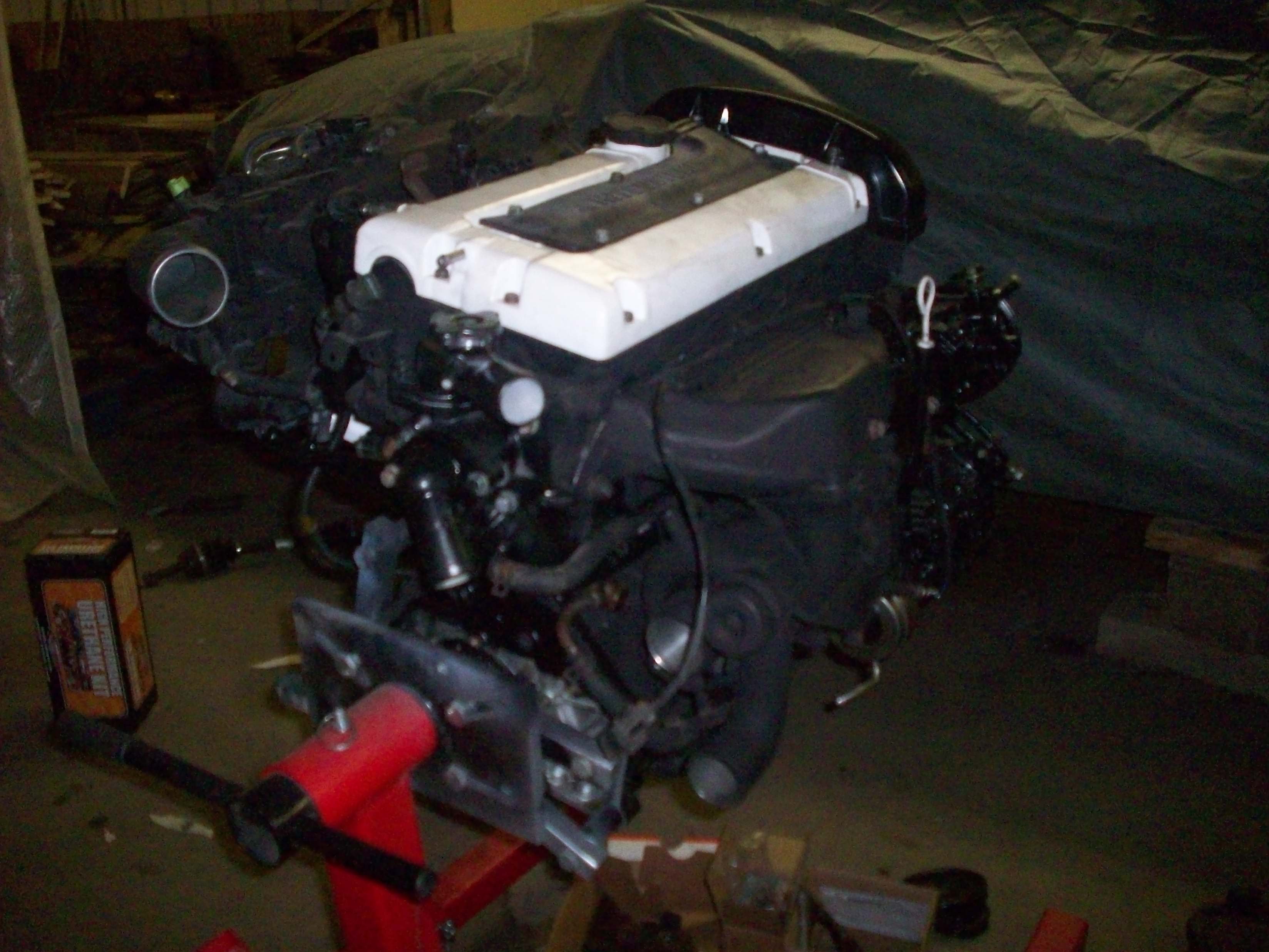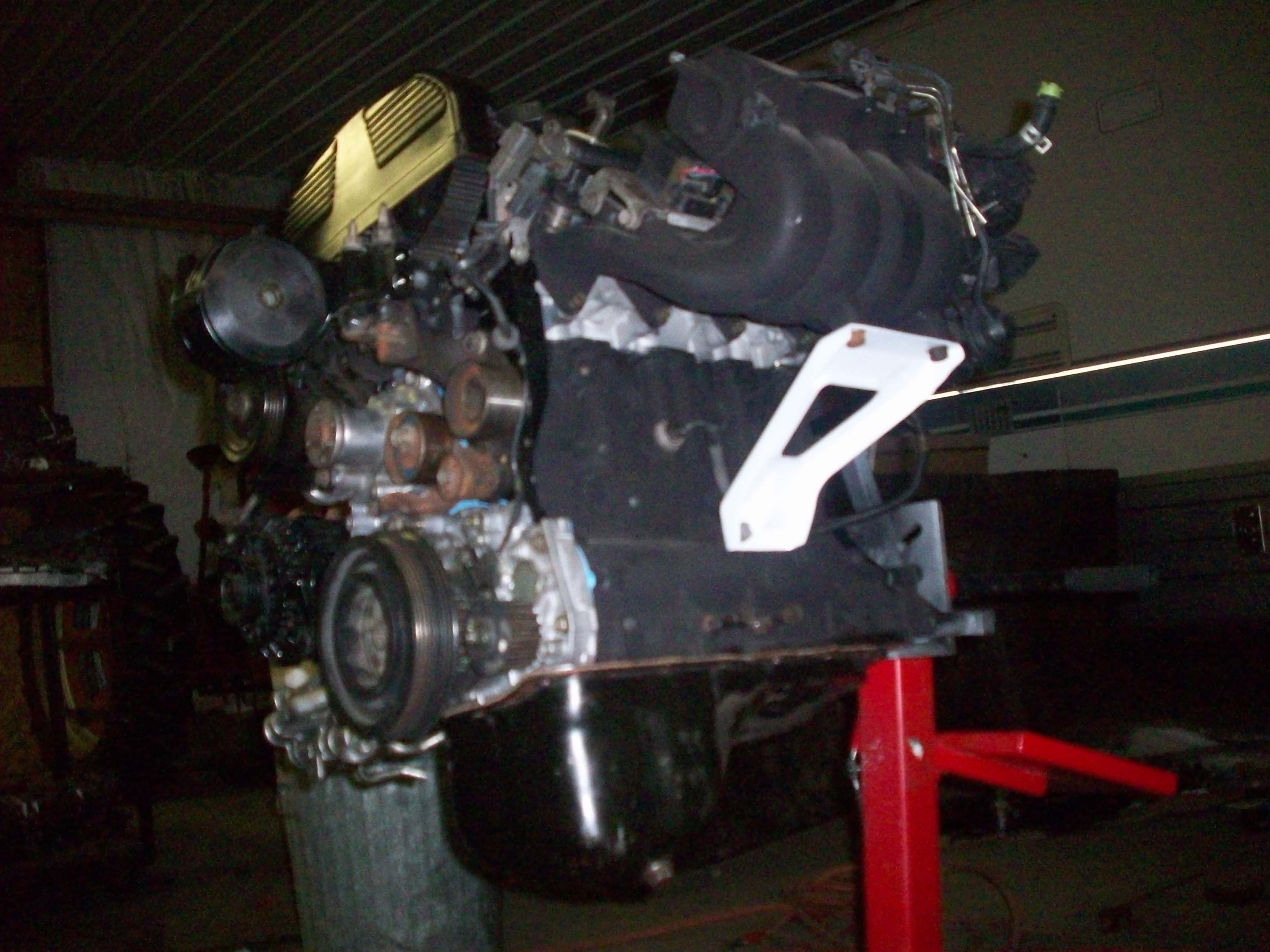 This is the 4g64/4g63 hybrid motor.. keeping the turbo stock for now until i get it all working right. its a big enough project the way it is.... This is the motor almost all put together.. still need to put on the galant cam gears and timing belt. then time it..
