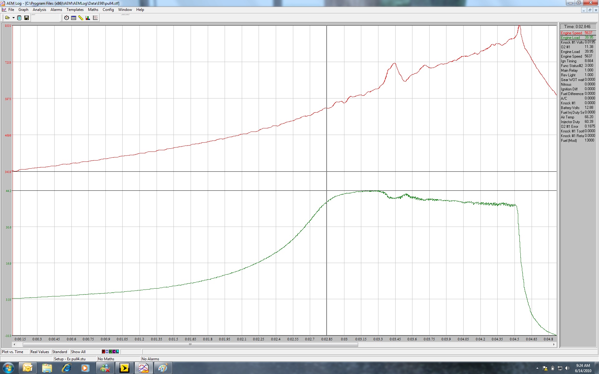 I did some pulls this Saturday to get my car ready for the MAP’s BIR weekend.I have a GT4202R with a 1.01 housing on a 2.3L currently tuned on E98, no nos to aid spool. I thought I would post a log of a third gear pull I did this weekend. I’m super impressed with the spool on this setup, 40 psi by 5600 RPM! I lost some traction at 7K. The car feels like a freight train!