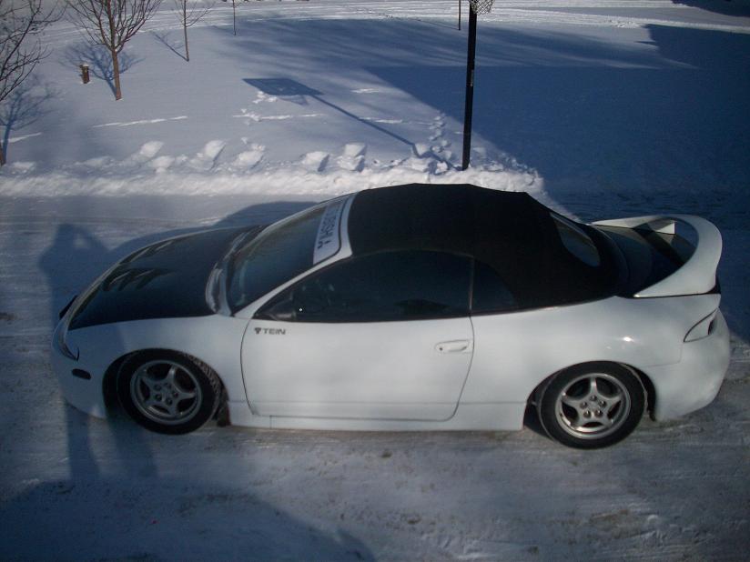 My 97 Eclipse GSX Spyder that began as a mitsu purple, 2.4L, SOHC, N/A, FWD, Automatic in 2008. It is going to be a Arctic White, AWD, 2.4L, DOHC, Turbo, Manual, with minor mods