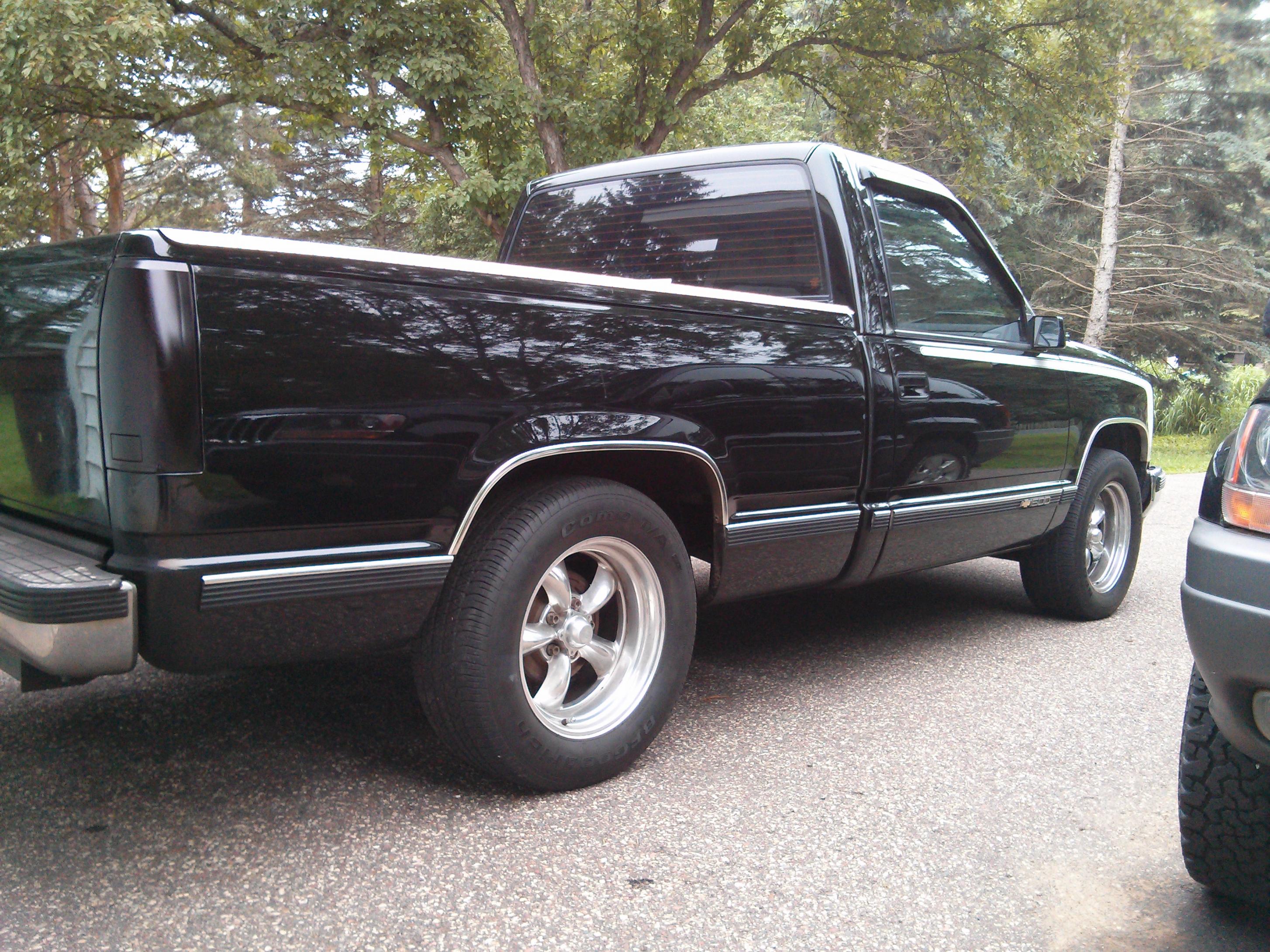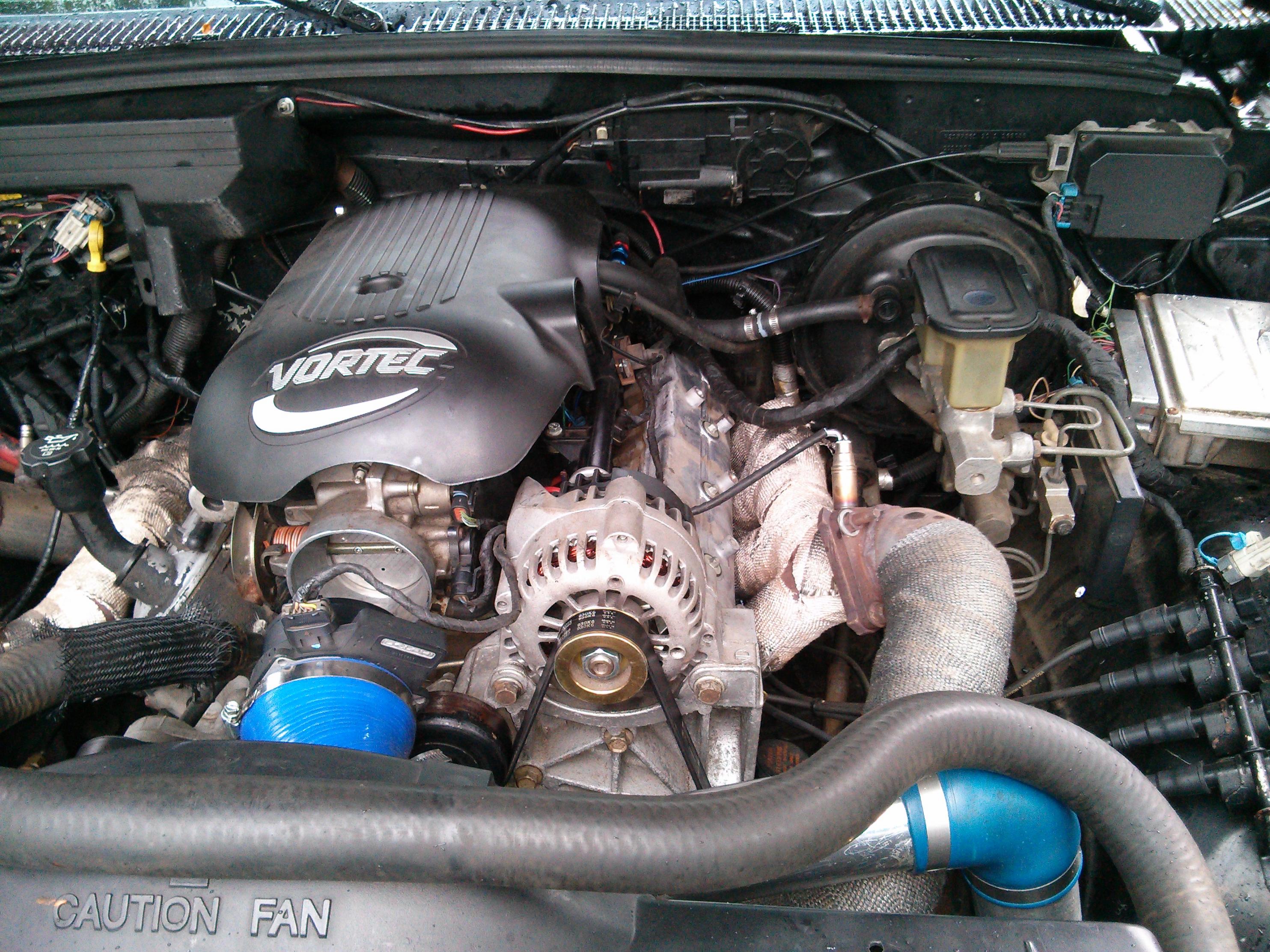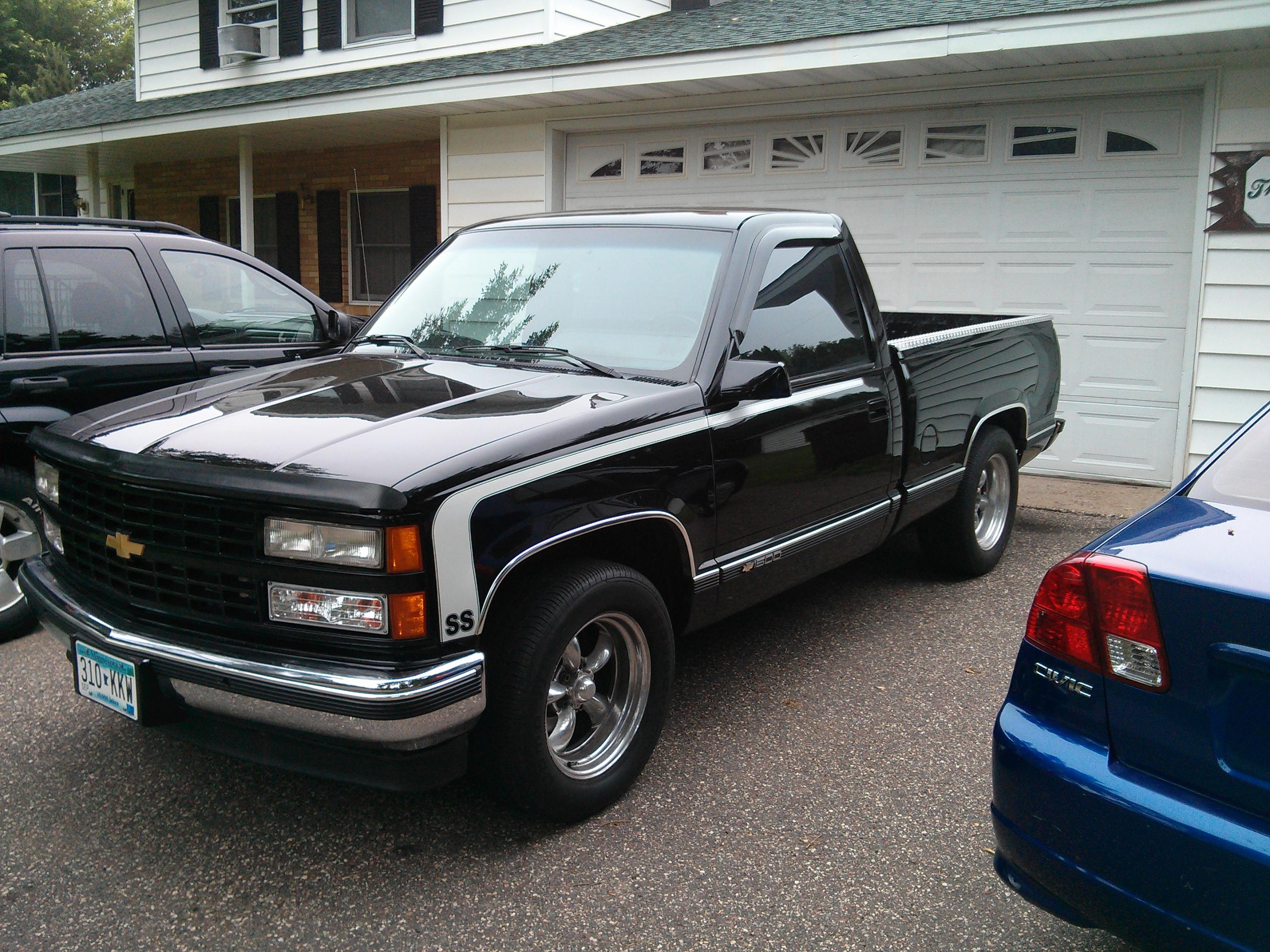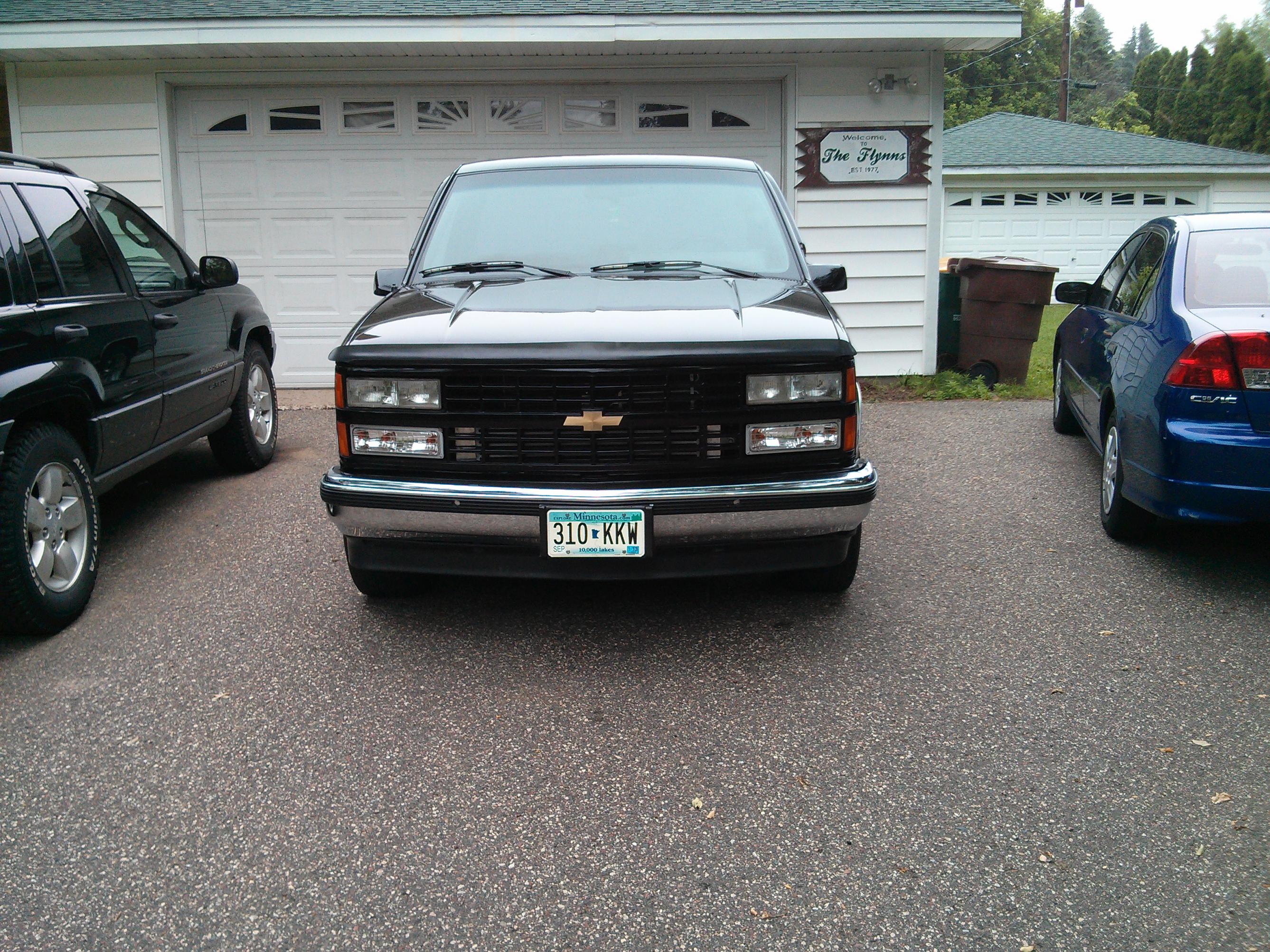 Just picked this beast up last night. Its a 1990 Chevy as Silverado. It has a 5.3 swap with 706 heads. The motor is all stock except for valve spring. It has a gt45 turbo mounted to it running 10 psi. It made 590 at 10 psi on pump gas with the old motor at APS auto works. The old motor had a came and different heads. The truck needs some work to be perfect in my eyes. I need to fix a couple things before bringing it in to get retuned. I am hoping I can break 600whp this year with it. I would like to clean up some of the wiring, fix exhaust stuff, cooling fan, install a trans temp gauge, waste gate dump tube, and some other small stuff.