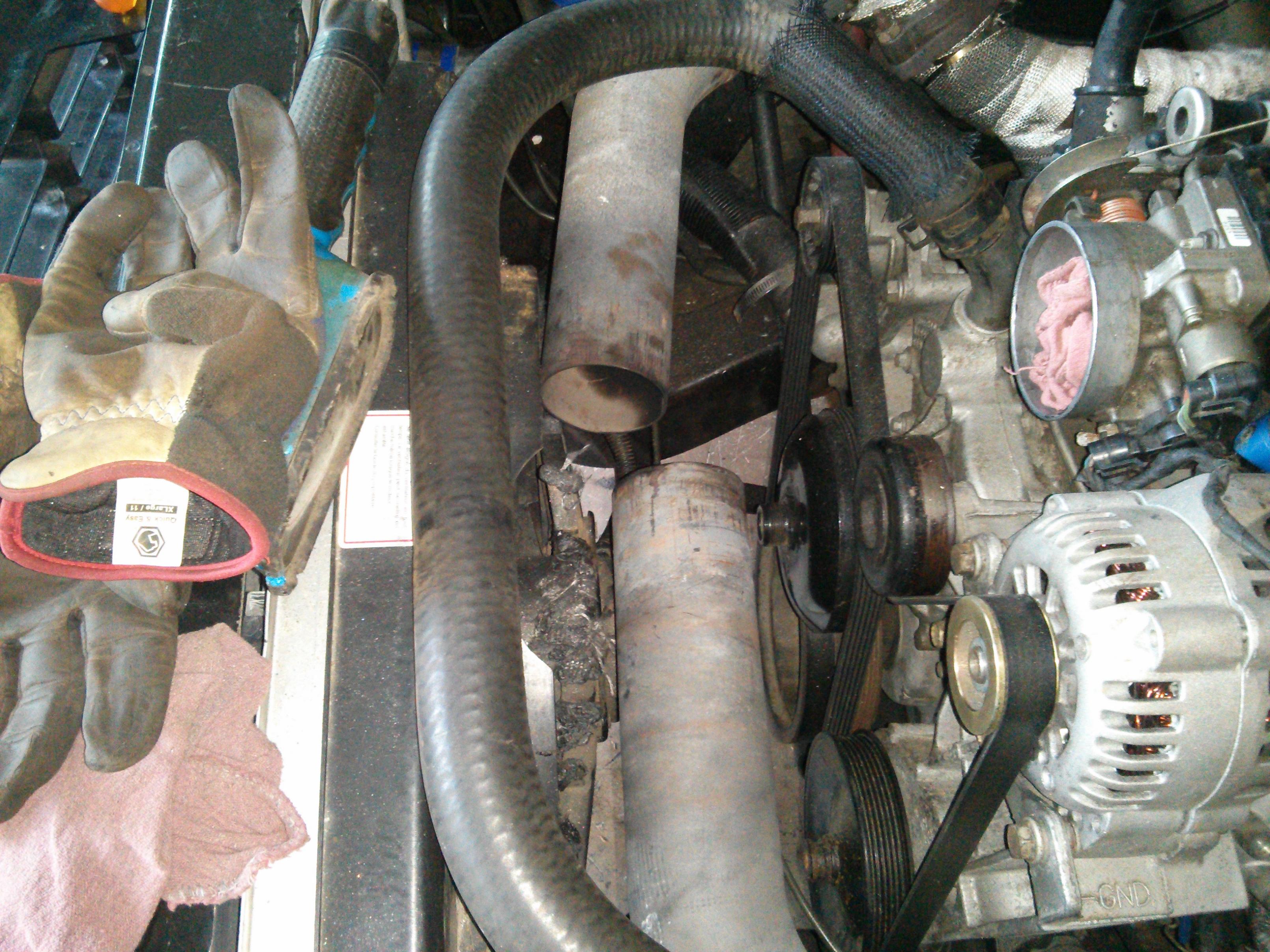 Well I been busy this weekend working on the truck. I fixed the exhaust cross over pipe this weekend. It was way to close to the radiator fan and they had a flex pipe on the cross over pipe. I ran out of exhaust wipe and energy to finish it today. I have a new turbo on its way. Hopefully by the 4th of july I will have the truck up and running again.