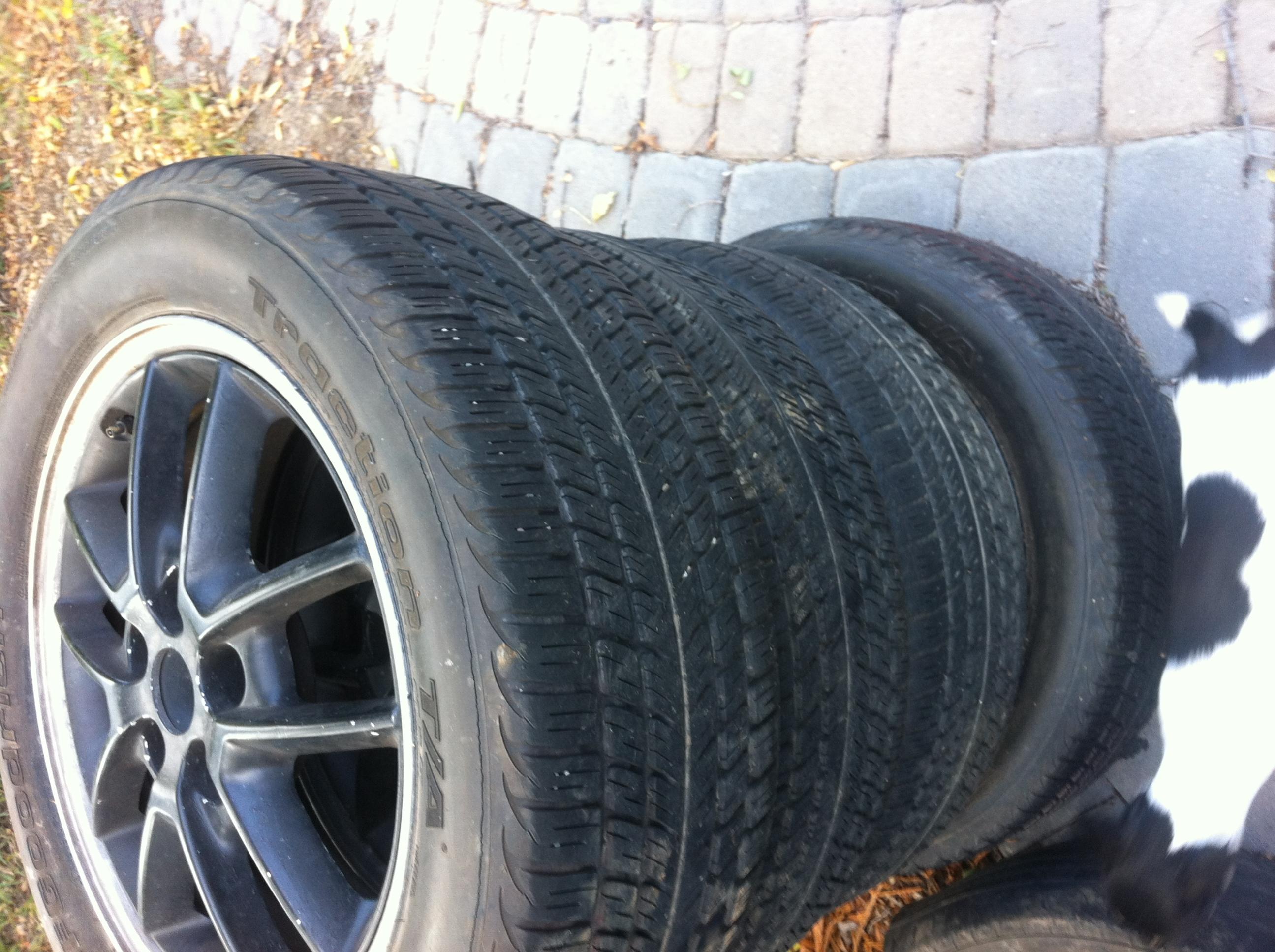 - Set of 2GB eclipse GSX wheels & tires. The tires are BFGoodrich Traction T/A P225/55R17 ( little weathered but have decent tread, also wheels have been painted black in a pretty shitty manor but could be cleaned up)- $75 B.O