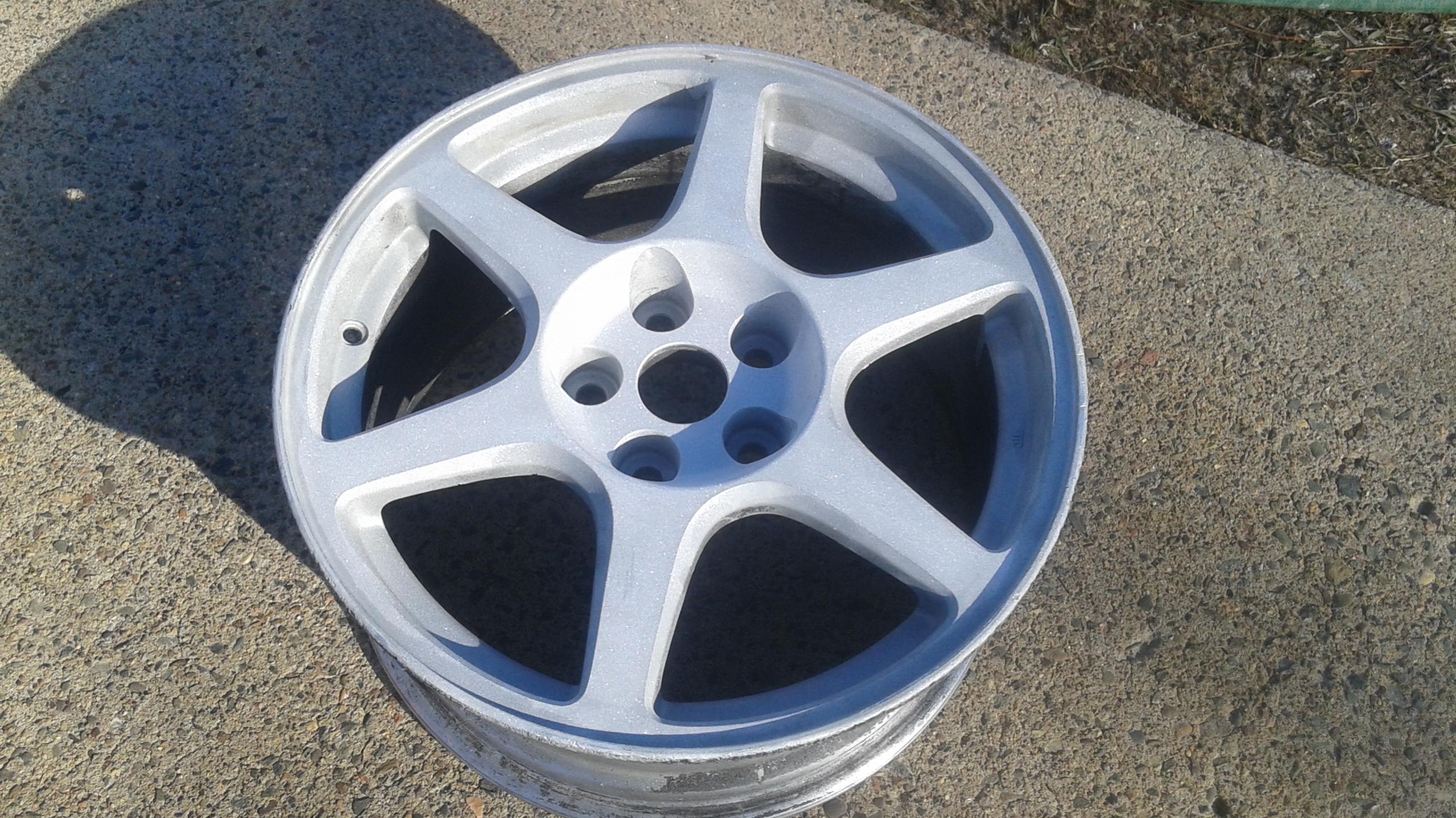 Craigslist find. Got me some Evo8 Wheels for $150. One ended up being non-repairable so I ordered another single wheel on Ebay for.....$150, dammit. Had all Wheels inspected at Alloy Wheel Repair Specialists in Mounds View. All are good so now I feel OK refinishing them.