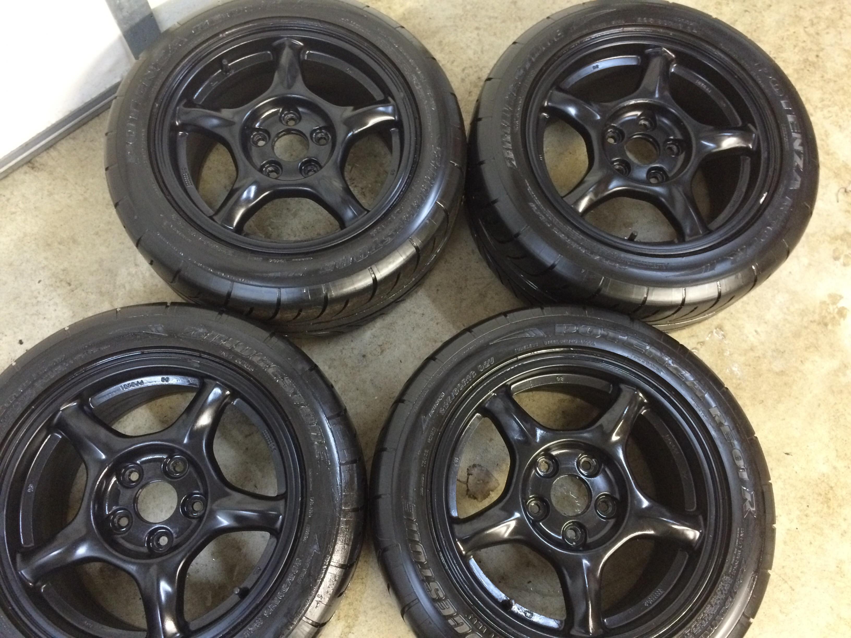 Selling a set of reinforced FD wheels. Have Potenza RE-01R tires on them. Tires are at 6-7/32. New have 9/32. Wheels are in great shape other than 1 scuff in one of the wheels. Not sure what there worth so make an offer. Could split if needed.