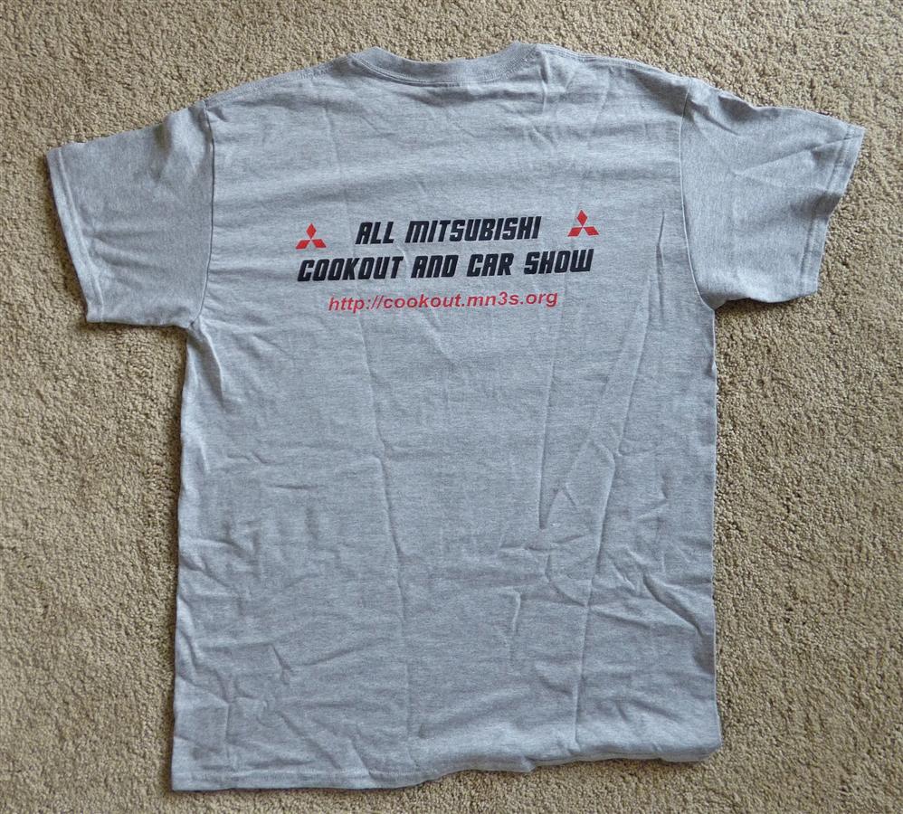 With the additional sales of t-shirts, and the sponsorship provided by White Bear Mitsubishi, we will be able to keep the price of the All Mitsu Cookout at $5. This includes you and your car in the show and all the food and drink. Each additional person who wants to eat is also $5.