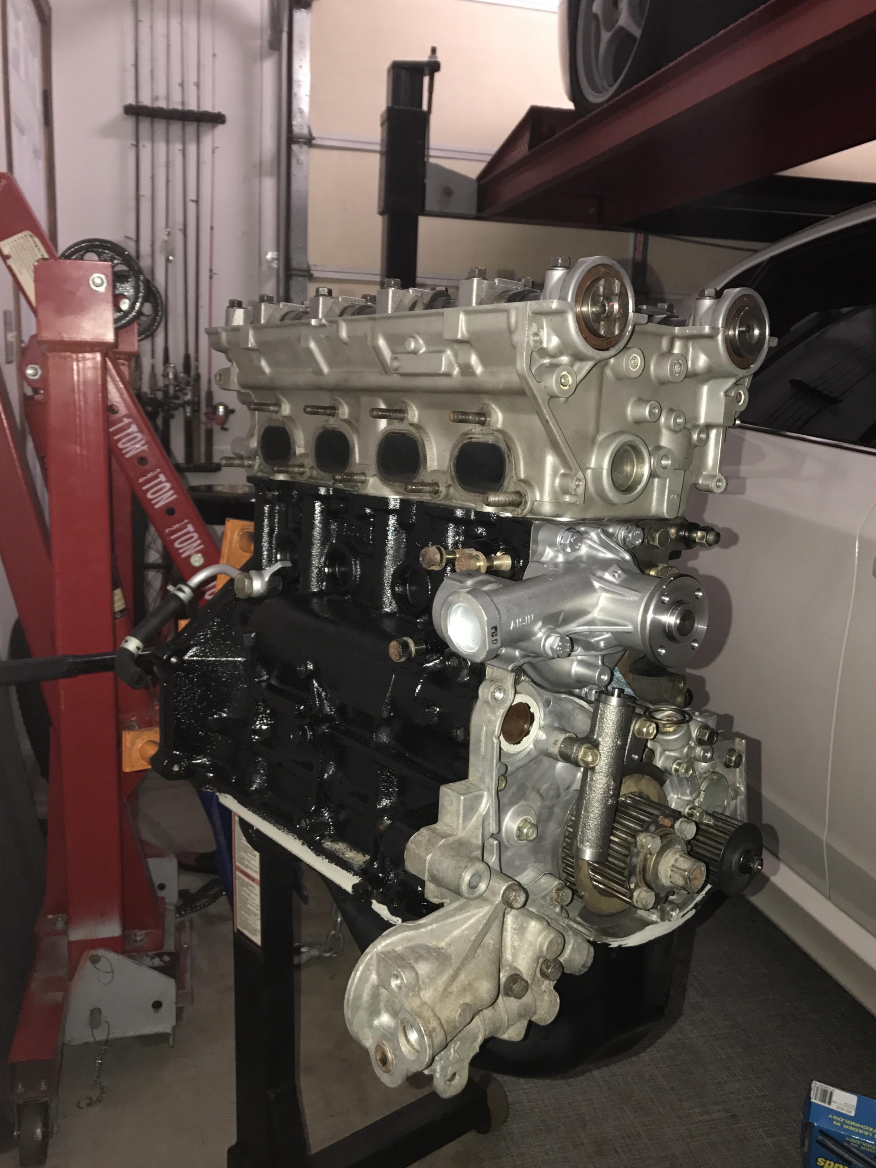 Tonight we got alot done on the girlfriends engine. Front case / ofh torqued down, new oem oil pickup, oil pan bolted on, new oem water pump, built head torqued down with a oem mls headgasket and arp headstuds. Next will be timing then getting the turbo all bolted up along with the intake. More to come