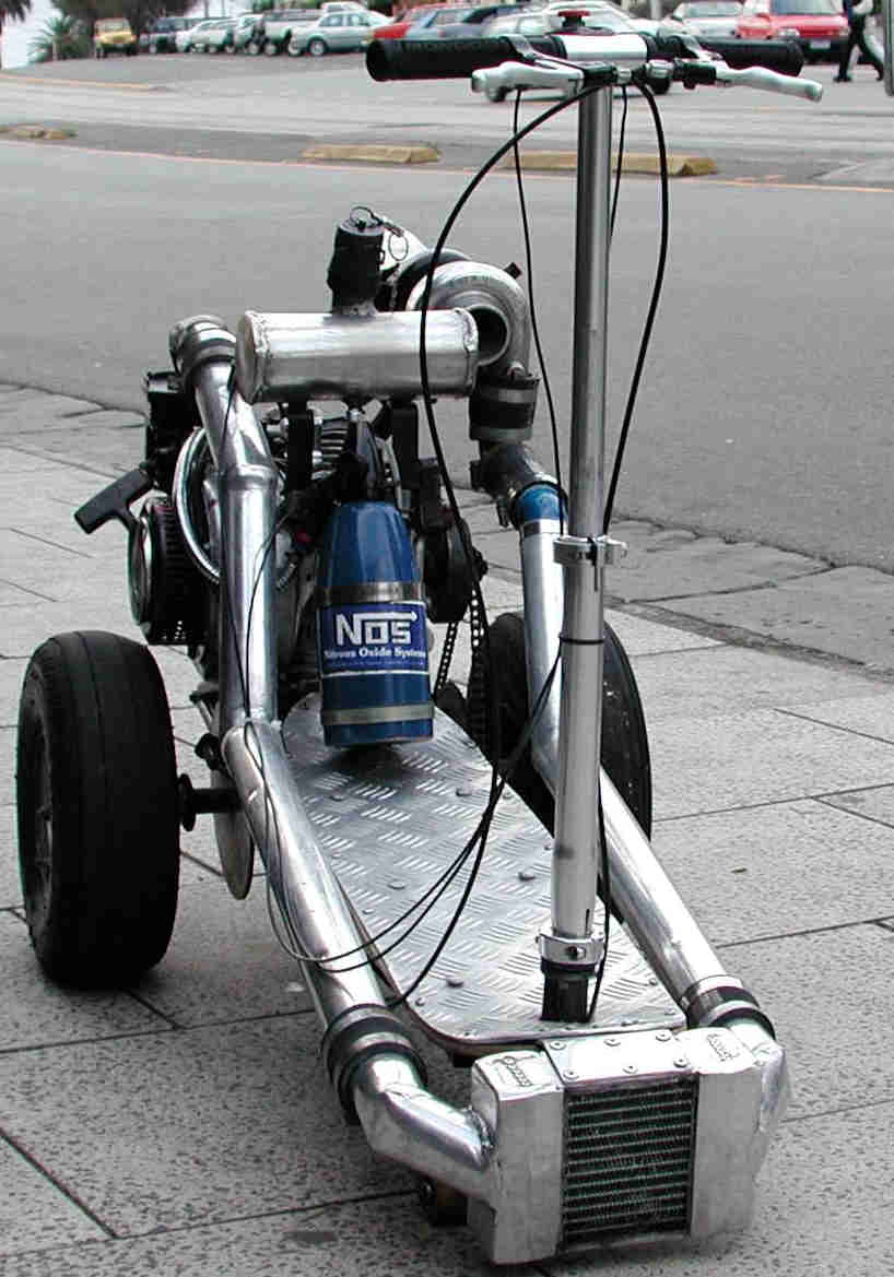 i have seen that scooter before. the funny this is that the endtanks for the IC are bigger than the core. I bet that the turbo and IC are just decoration cause I have a 5hp gocart and I don't think the exaust would be strong enough to turn a turbo. cool none the less.