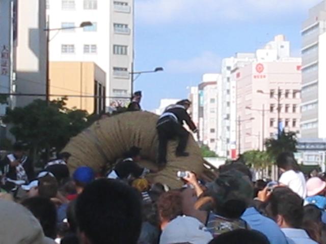 Went to a tug of war this weekend. It's an annual event here in Japan. This rope is in the guiness book of world records. The thing weighs about 7 tons. Tens of thousands of people show up for this event. It was pretty neat. Afterwards there is a huge beer fest that's about a 10 minute walk from the tug of war. The rope is so big that it can't be lifted, and people are walking up on top of it. There are smaller ropes that branch off the sides of the main rope, like handels, and that is what you tug. Everyone just grabs the side ropes and starts pullin. Here's a few pics!