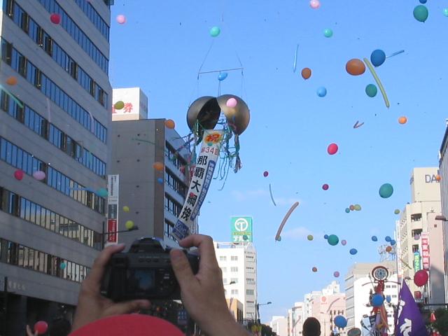 This gold ball blows open and a bunch of balloons and shit come flying out right before the event starts. We got 1 balloon, but later gave it away to this cute lil like 2 year old kid who came up to us with open arms and a big smile wanting it. You couldn't tell the lil guy no, he was cute!