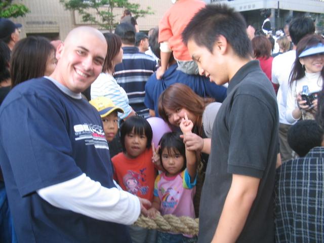 It has some sort of tradition behind it. Something to do with the battle of the samurai's before they were killed off I think. In the opening ceremony, some people dressed up like samurai's meet at the center of the rope and do a little act, and then the gold ball blows off and the tugging begins. You may think it's weird, but it was really cool and a tradition of theirs based off something in their history.