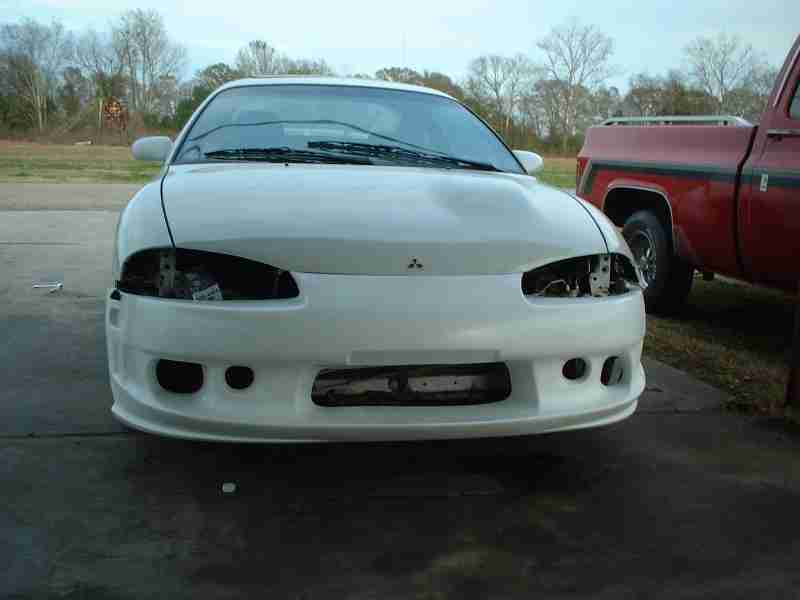 Preview of what my car COULD look like. Yea, this IS my car, those ARE my wheels and that IS my body kit. The wheels are bolted on, but the kit, and headlights are just sitting there to see what it would look like. So, yeah, thats what it will look like once the kit is professionally installed, the front is attatched and the headlights are GARBAGE. The inner/upper mount, close to the radiator keeps breaking, 3 different brand epoxy mixes and NONE hold up. Damn APC. So I will prolly get different ones. Dunno. I had to cut my wiring from the factory lights and interlace them into this, so it was a pain. The kit isnt on because I dont have a hookup to do it for me, lol, and I am broke. I havent decided on my suspension, leaning towards TOKICO with Eibach springs. Not gonna be Tein for sure. I thought of goin with an air ride (have a bagged mazda truck) for the adjustability. But, I dont think that would be a good idea, lol.
