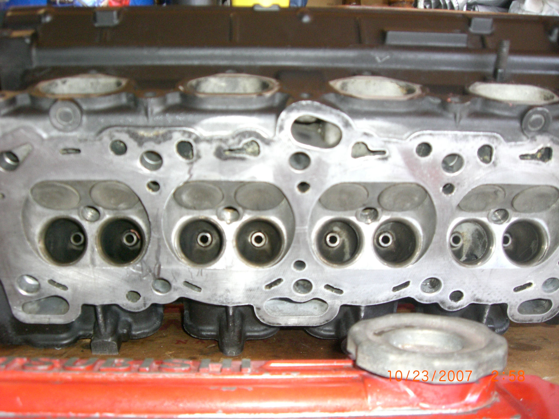 10) 1G 6 bolt Head ( timing belt skip so need to change just the intake valves, exhaust valves still good. come with everything else like, rockers, lifters, valve springs, cams, cam gear. valve cover, etc. All you NEED is intake valve, valve seals, and guides.) The head is really CLEAN. $150 B/O
