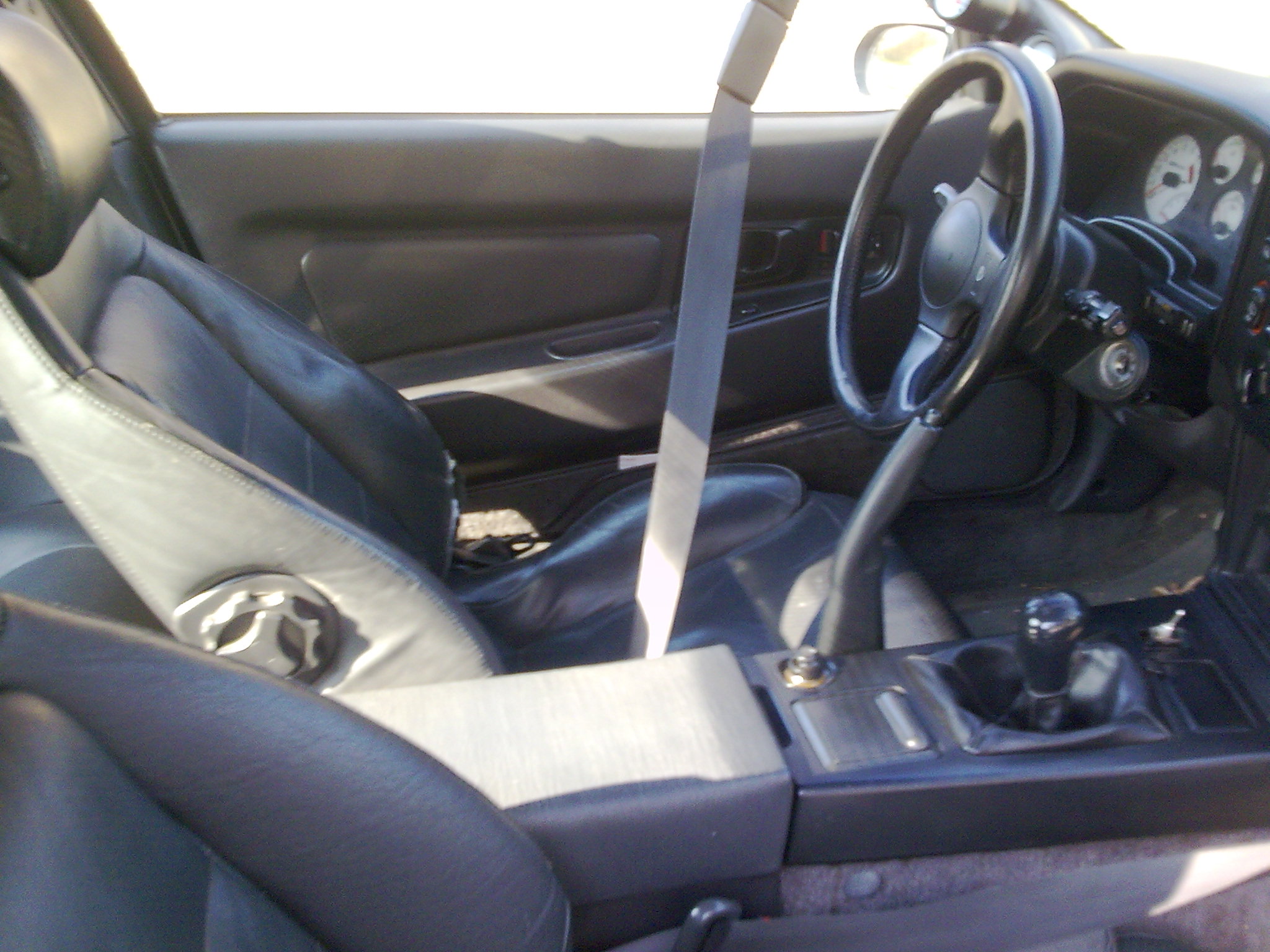 Black Leather interior, driver's side is starting to tear, but the rest is perfect.