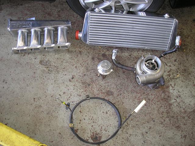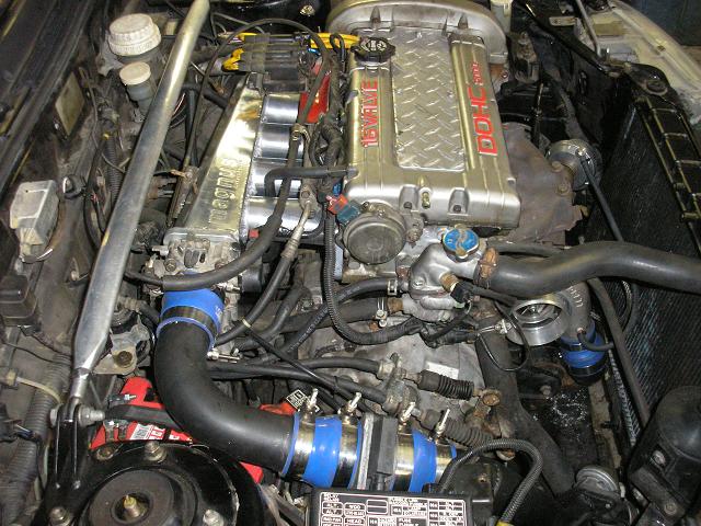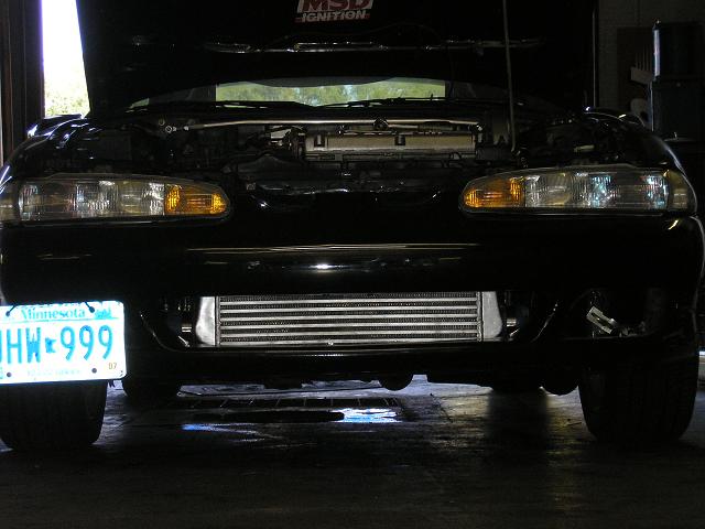 So here's my project. I got the car in Febuary from a kid selling it on MNSC. The car was mostly stock at the time, it just had a small 16g, 2g exhaust mani, a small Spearco FMIC, a boost gauge, and a K&N filter. It had a boost leak, and some crappy plugs and wires when I got it, so the first mod was to get rid of all the worthless Emissions crap, and throw in a decent set of plugs and wires. That cured the boost leak, and made it run better, but I wanted more.