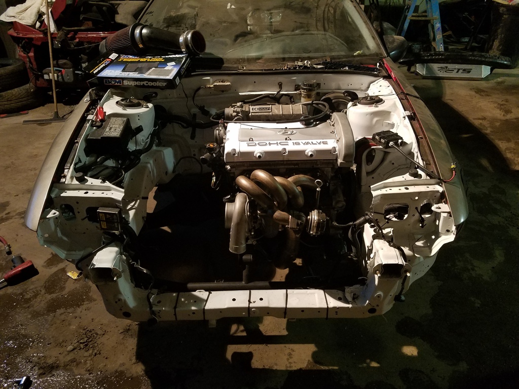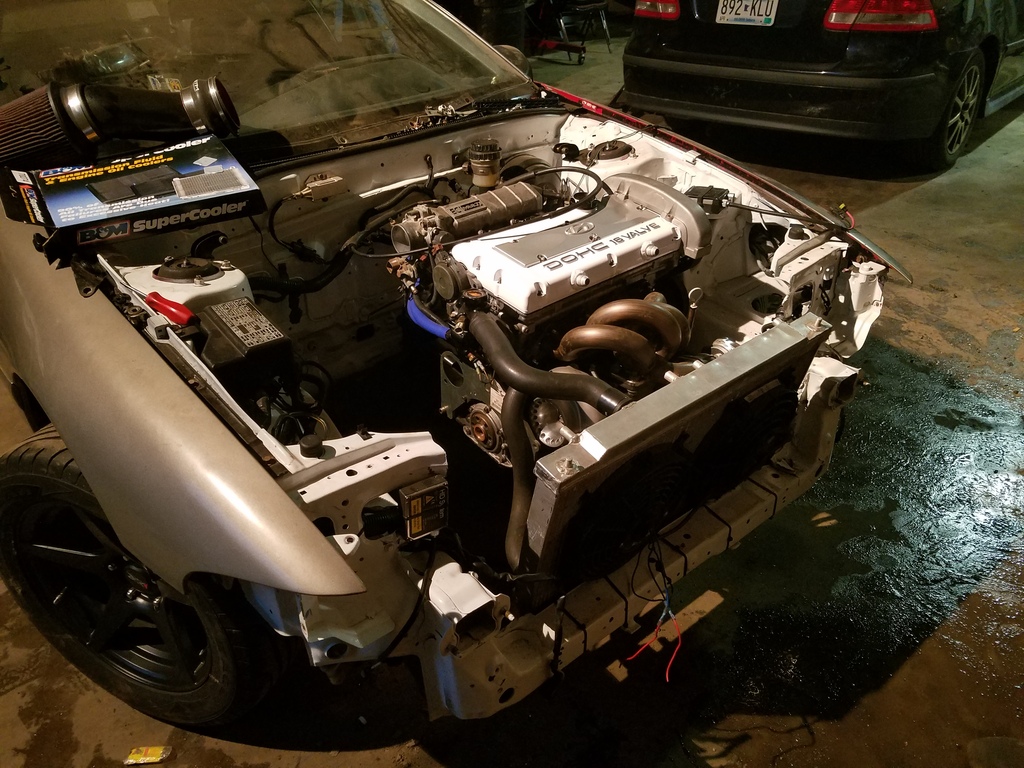 So got the valve cover I have always wanted. Also auto roll mounts seems to move the engine about 2 inches forward compared to the manual ones so the wastegate was hitting the radiator. Took care of that and having a guy building a tubular core support.