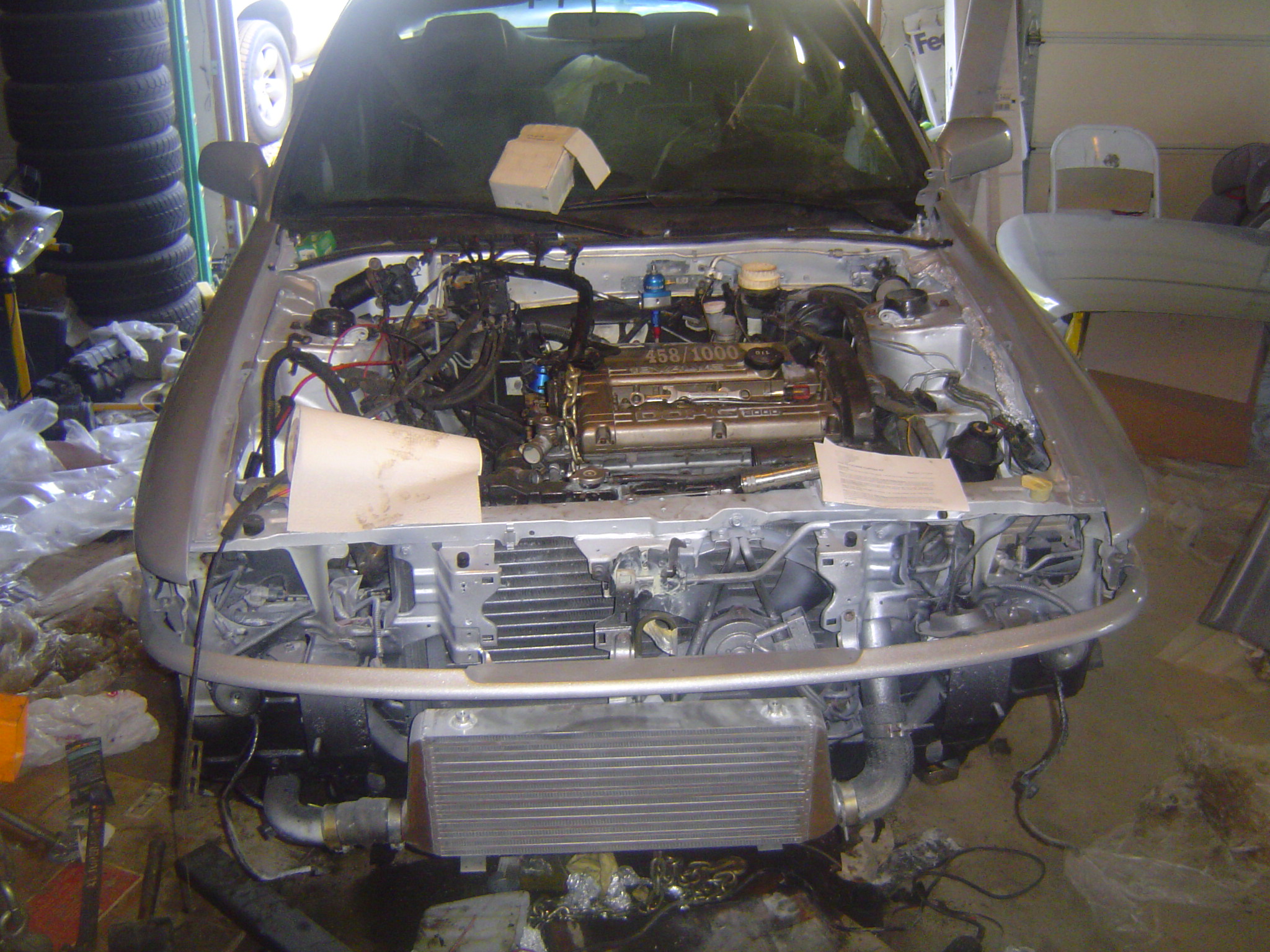 I got the engine in Friday night. Started at 9 and got done at 3 in the morning. Damn passenger mount gave me some trouble. Car has a fidanza flywheel and competition stage 4 clutch on. I also got the fmic and shock/strut assemblies back on.