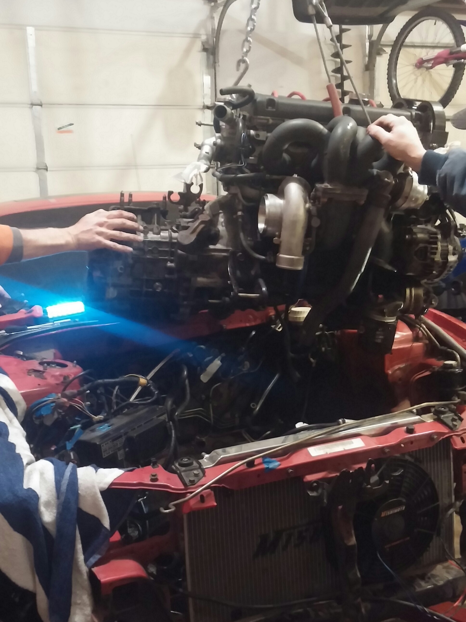 So after getting this 2g and looking at the bay and seeing the paint coming off and the padding on the fire wall that is ugly i decided to pull the motor and repaint and fix the strut tower since i picked up my daily driver this past saturday so i can finally get started on it.