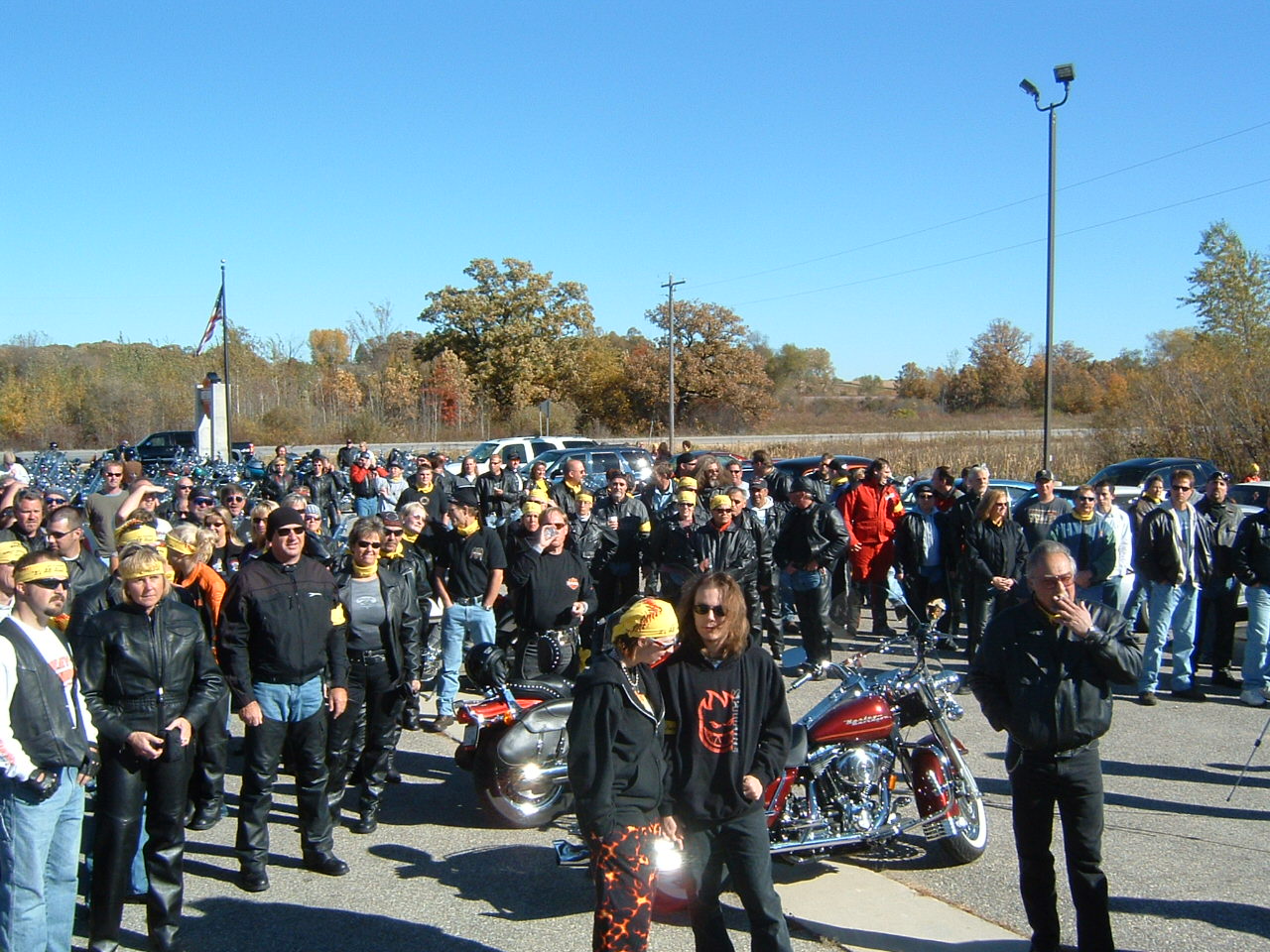 Bandana's will be available ahead of time for a small donation towards Jimbo's recovery if anyone wants one. They are printing 144 yellow bandanas that say "It's all about Jimbo" on the front and if you reverse the bandana it will say " Git -R- Done". Both side will have flames on them. Chad Kanz has the map of the route we will be taking on October 10th. I will get it from him and try to post a link to it on this site.