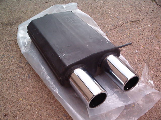 I have a muffler that may work for you, 3" inlet, dual chrome 3" tips. It's a magnaflow or hooker I don't remember, it's in my garage, I can get you a pic if you like. I have no idea what it sounds like, it's never been on a car, just a part of a failed dsm experiment.