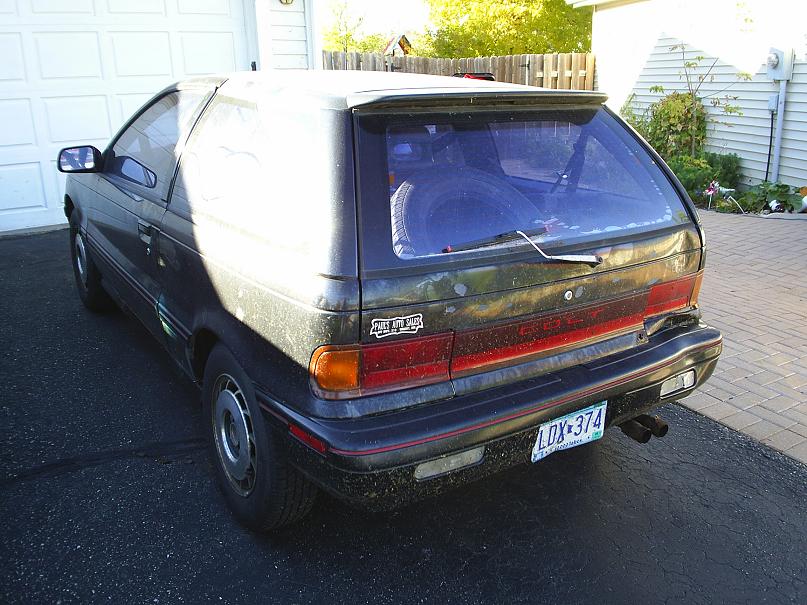 It runs perfectly, it just needs a clutch. The body is junk, it has a control arm from an NA colt and the sway bar isnt bolted on. Probably due to structural damage. But who cares? It has a good tranny and motor and will get me back and forth to work all winter style(or complete lack of).