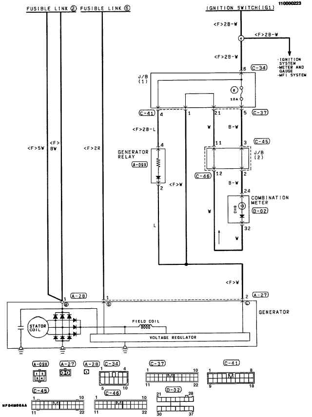 i looked at the wireing harness on alldata and came up with nothing because it only has three wires in the diagram: (no connector) chargeback, (coonnertor pin 1/2) field coil and one (connector pin 2/2) for somthing else? (total 4 wires)