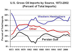 Here's a graph of our oil imports from the whole persian gulf since 1973 (only a small percentage comes from Iraq).The whole oil thing is just bullshit, its far cheaper for us to get oil from our other supplies (off shore, wells, etc) than it is to import from the persian gulf.