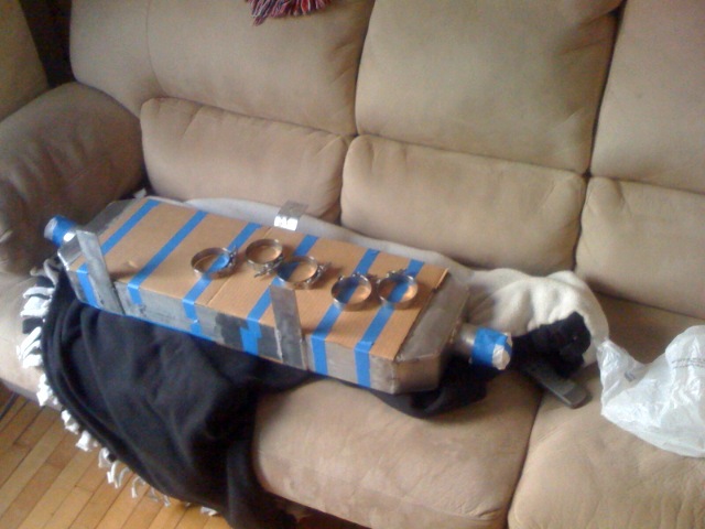 Got the intercooler and pipes yesterday, this thing is huge! It nearly takes up two couch cushions with the endtanks.