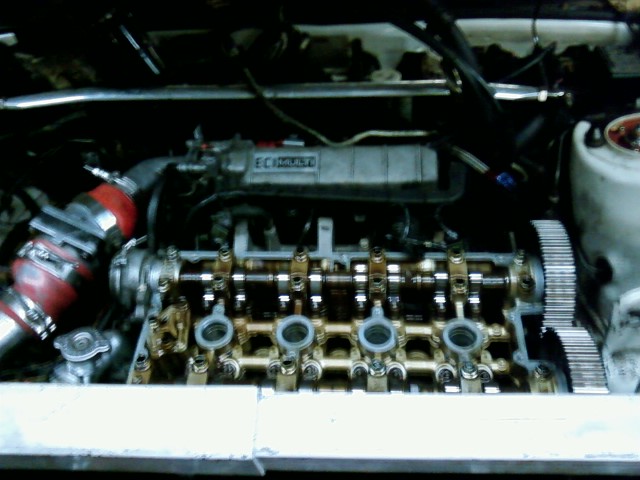 now here is what I've been working on at school the last week. I had the head rebuilt ported and polished, bc 272 cams, and an fp cast race manifold. a cometic head gasket and arp head studs will be going in as well. I've never been able to get this thing to run quite right but when we were taking it apart the timing on the intake cam was a little bit off and there was a ton of carbon build up on the pistons