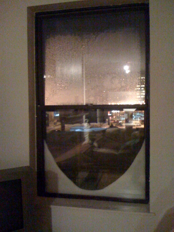 And my snowy/frosty front window. The snow is stuck between the screen and the outer pane.