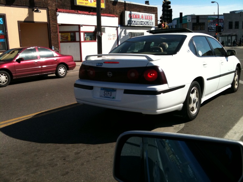 hahaha! reminds me of the car I saw at ep bowl last monday where the plate said SHUTUP. wish I had got a pic.