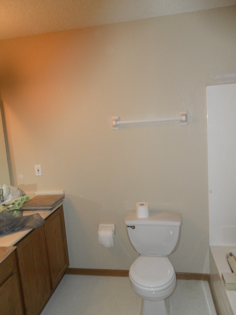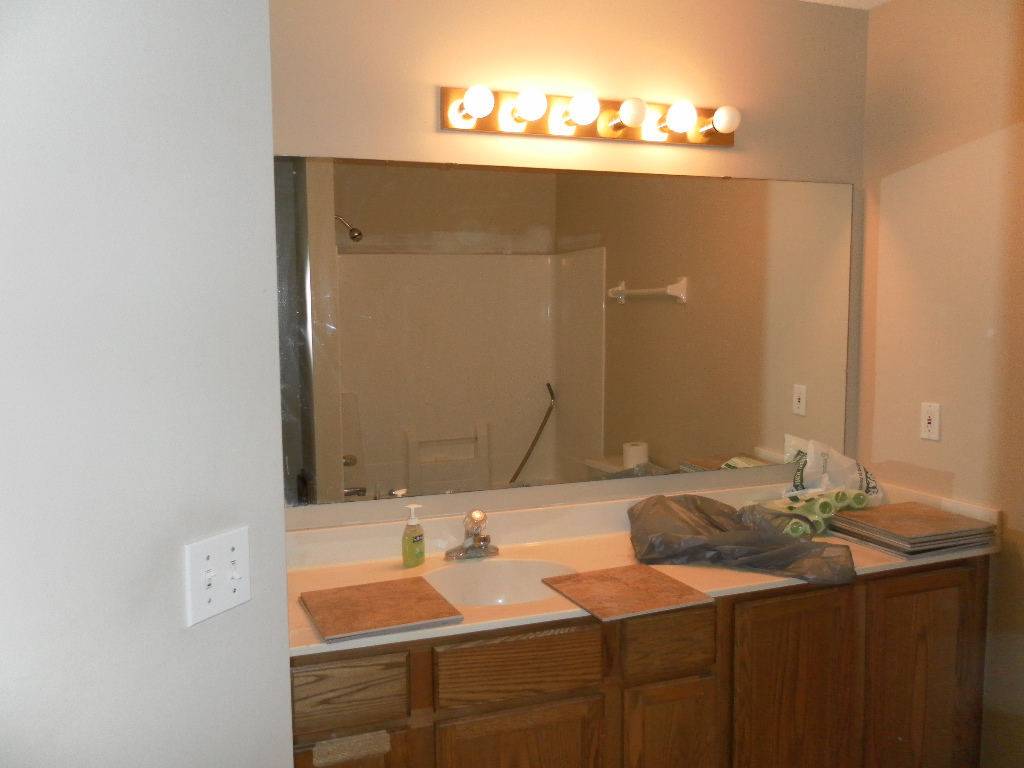 Here's the before pics. What you can't see in the pics is that the paint on the walls is pretty bad. Like he just did one coat, and didn't even attempt to keep the paint off the trim.